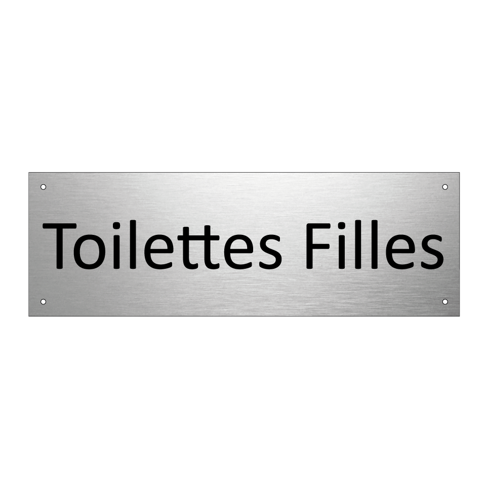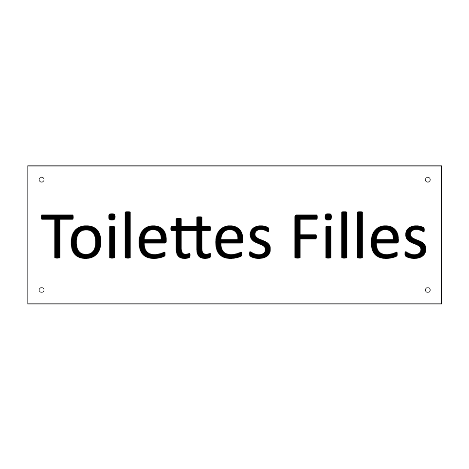 Cette enseigne est idéale pour indiquer les toilettes réservées aux filles dans divers environnements. Elle peut être placée à l'entrée des sanitaires dans des écoles, des restaurants, des bureaux ou des centres commerciaux. En utilisant un texte en français, elle est particulièrement adaptée pour les établissements situés dans des régions francophones ou accueillant un public francophone. Cette signalisation assure une orientation claire et efficace, facilitant ainsi l'accès aux installations appropriées pour les jeunes filles et les femmes.