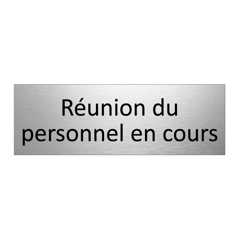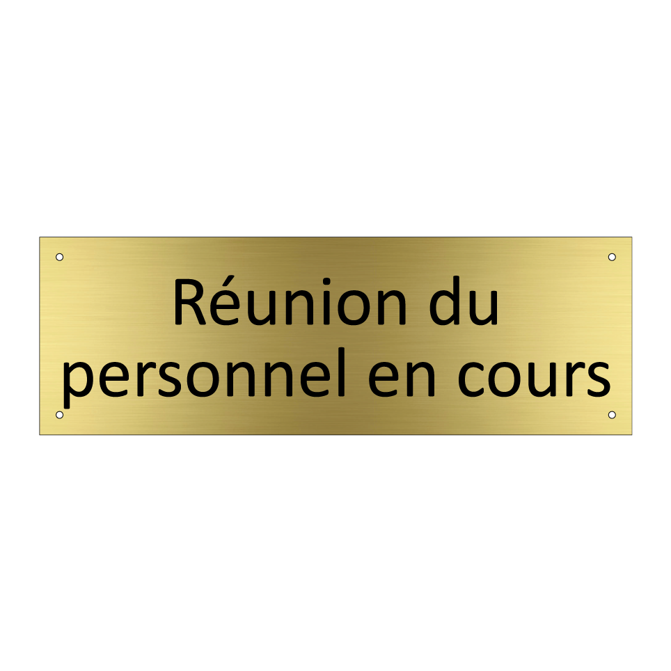 Panneau d'information avec le texte Réunion du personnel en cours.