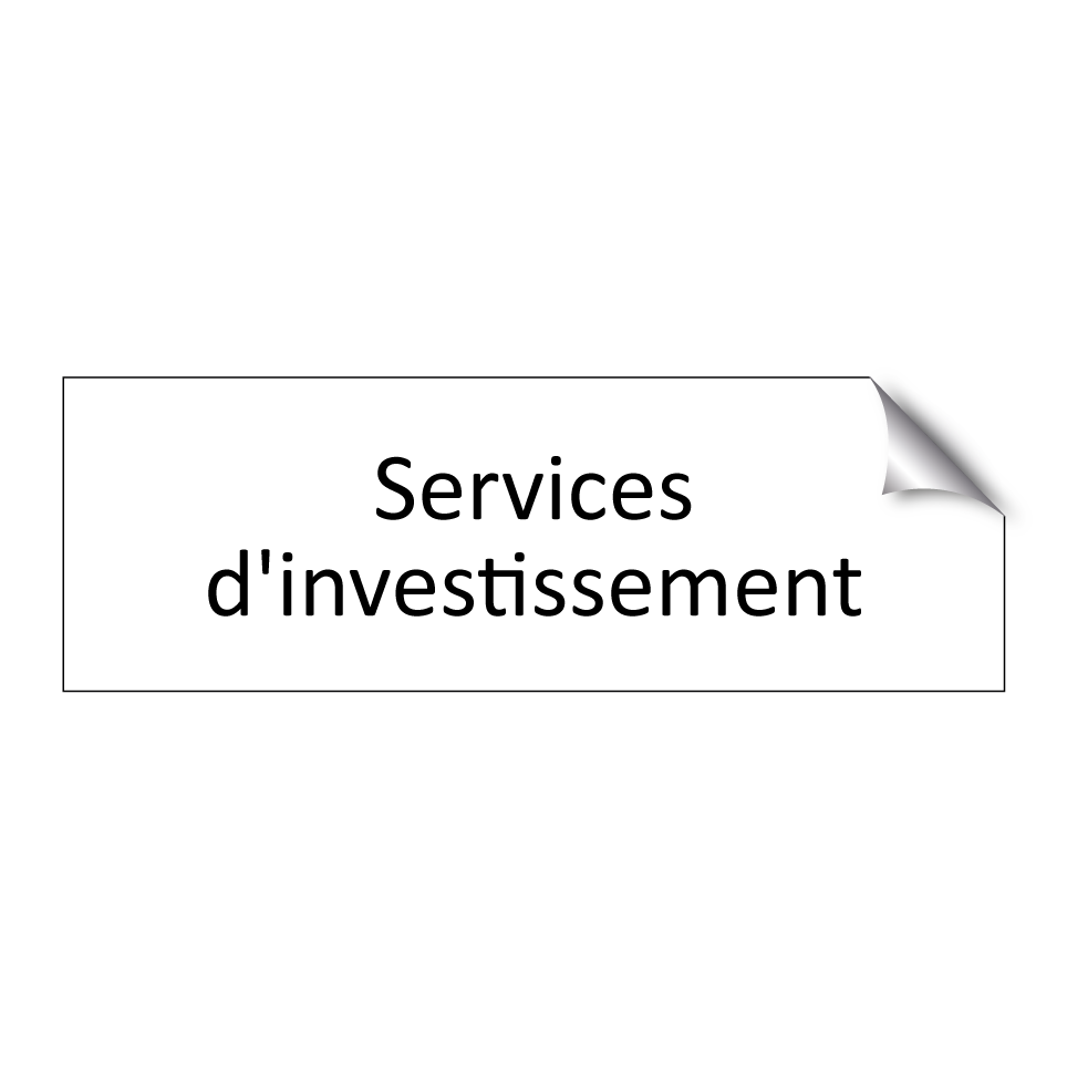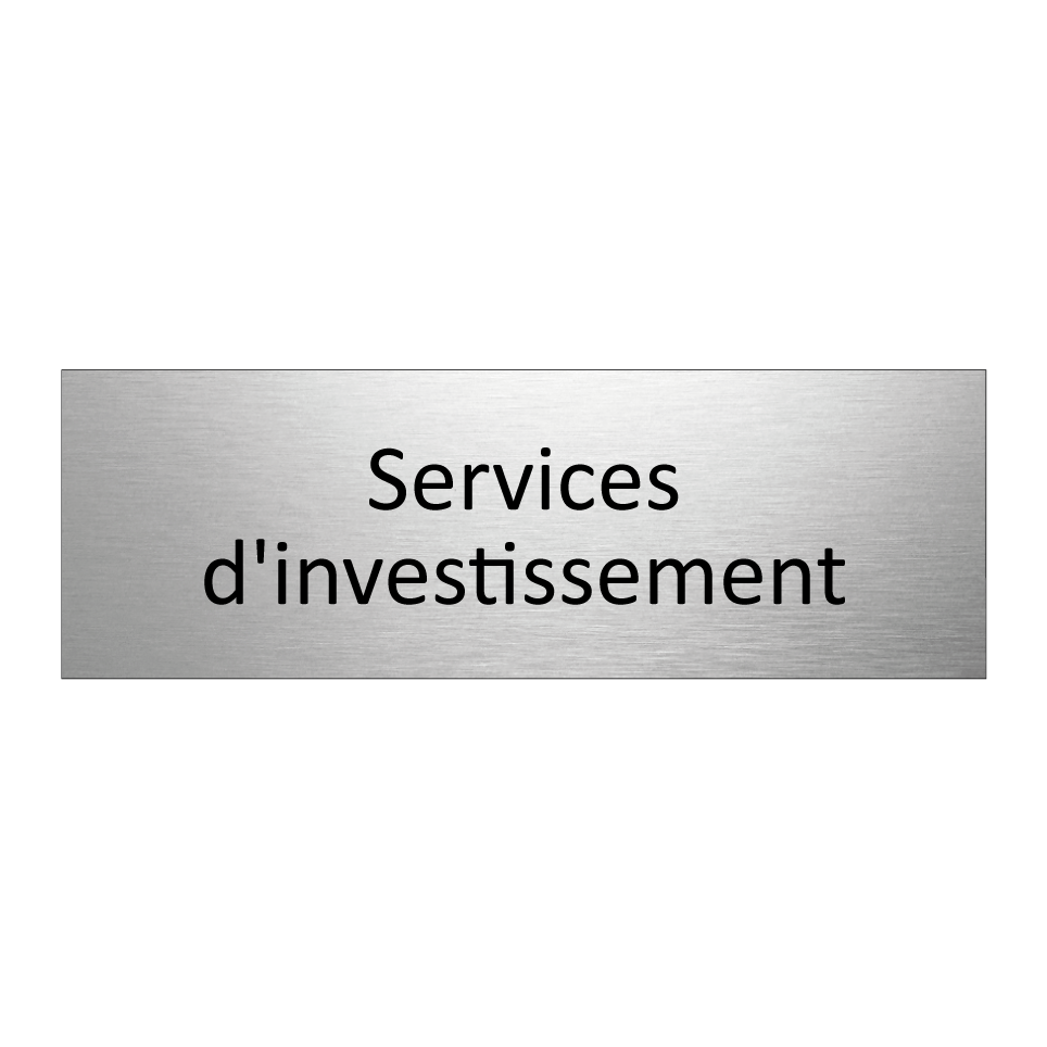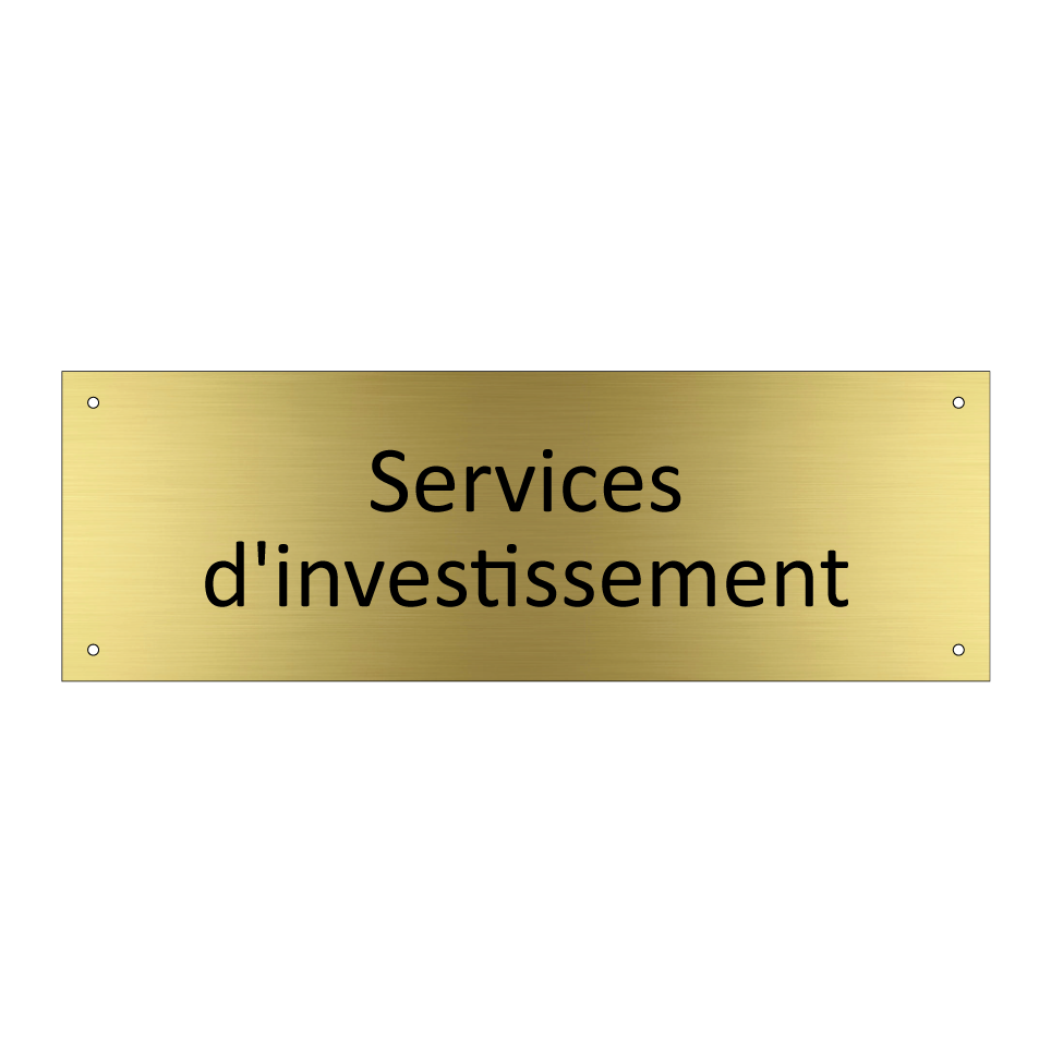 Cette enseigne en français, indiquant des services financiers, est idéale pour les bureaux de conseil en investissement ou les agences bancaires. Elle peut être placée à l'entrée de votre établissement pour guider vos clients vers les services que vous proposez. Utilisez-la dans des environnements professionnels tels que les centres d'affaires ou les zones commerciales pour attirer l'attention des passants et renforcer la visibilité de votre entreprise. Cette signalisation est un excellent moyen de communiquer clairement votre offre de services spécialisés en finance.