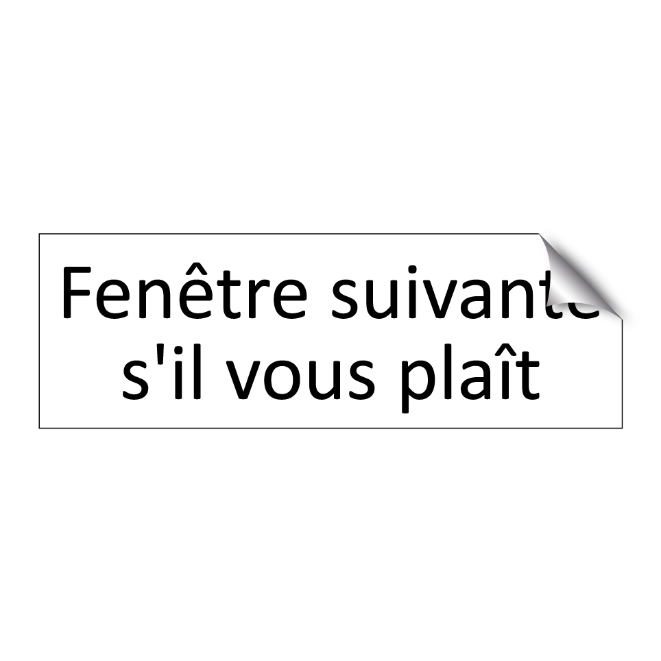 Panneau d'information avec le texte Fenêtre suivante s'il vous plaît.
