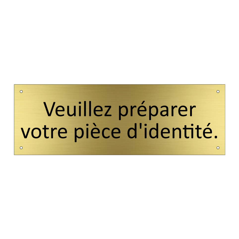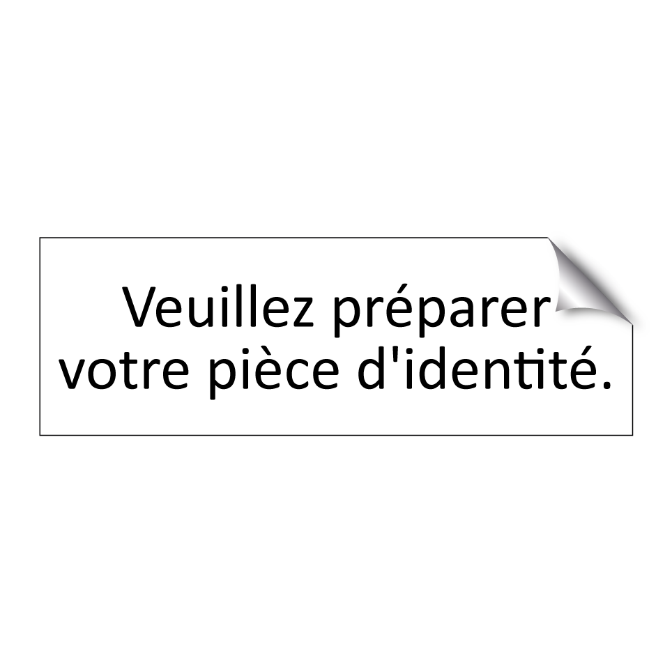 Panneau d'information avec le texte Veuillez préparer votre pièce d'identité..