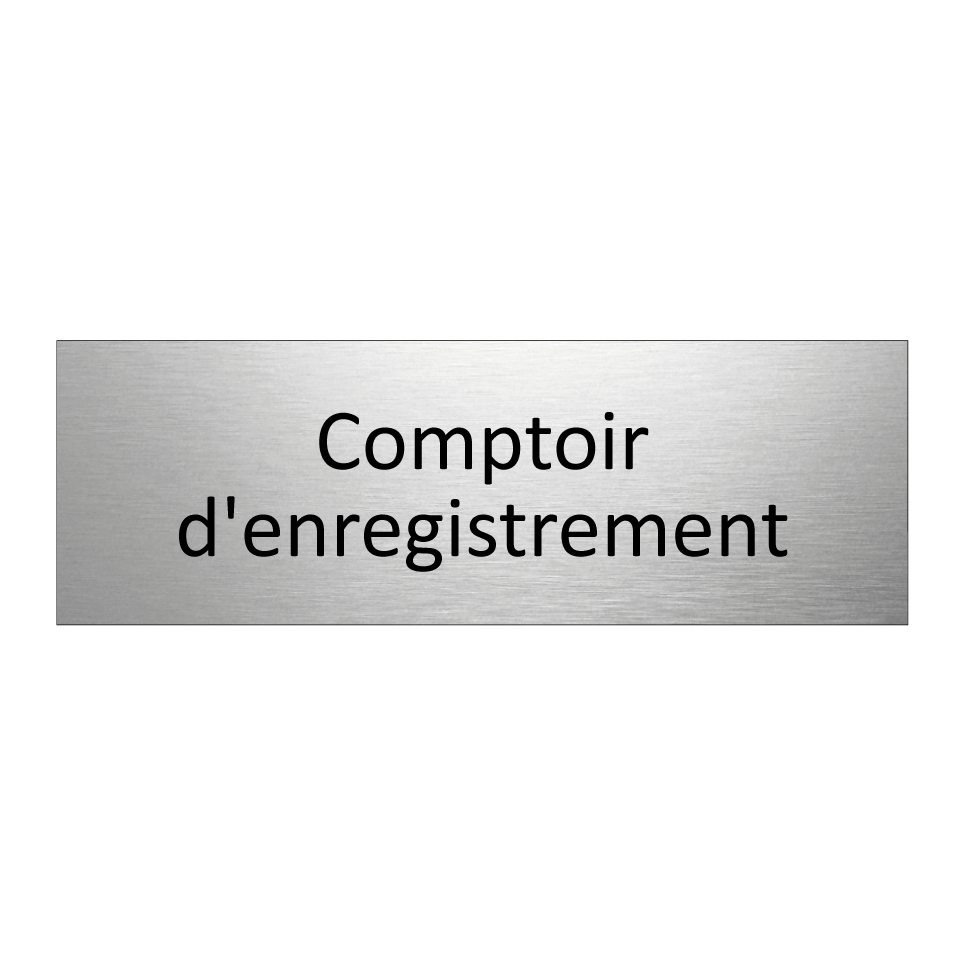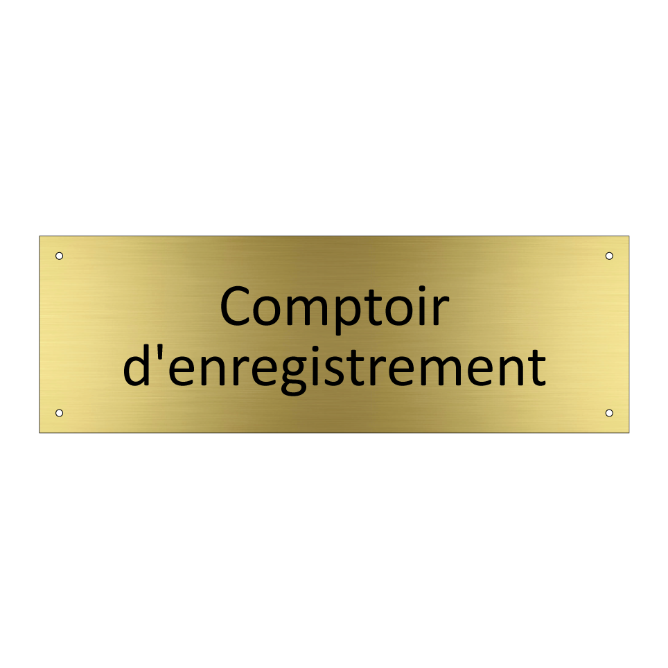 Panneau d'information avec le texte Comptoir d'enregistrement.