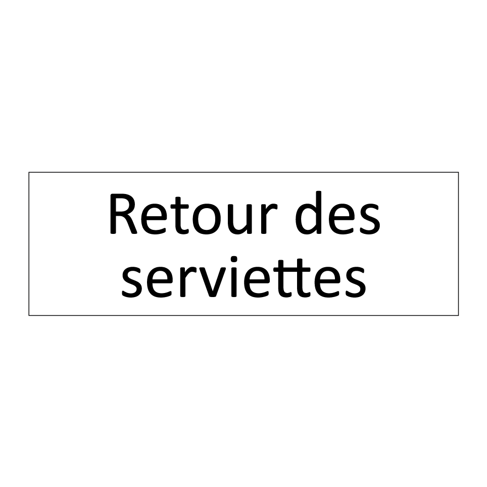 Cette enseigne est idéale pour les établissements hôteliers, les spas ou les centres de bien-être où la gestion des serviettes est essentielle. Elle guide les clients à déposer leurs serviettes usagées à l'endroit approprié, facilitant ainsi le processus de collecte et de nettoyage. Placez-la à proximité des zones de piscine, des vestiaires ou des salles de bain pour une visibilité optimale. En utilisant cette signalisation, vous assurez un environnement ordonné et professionnel tout en améliorant l'expérience client.
