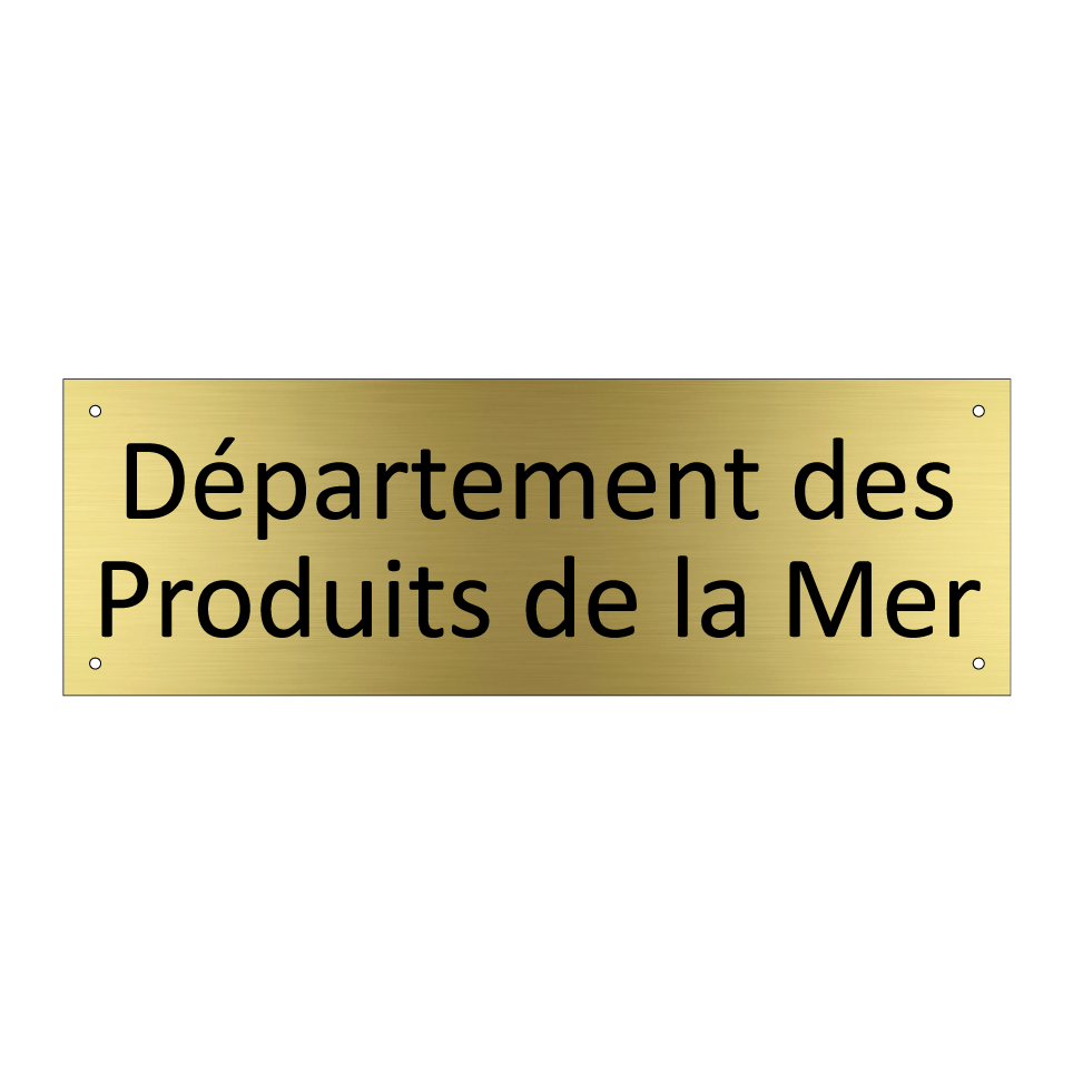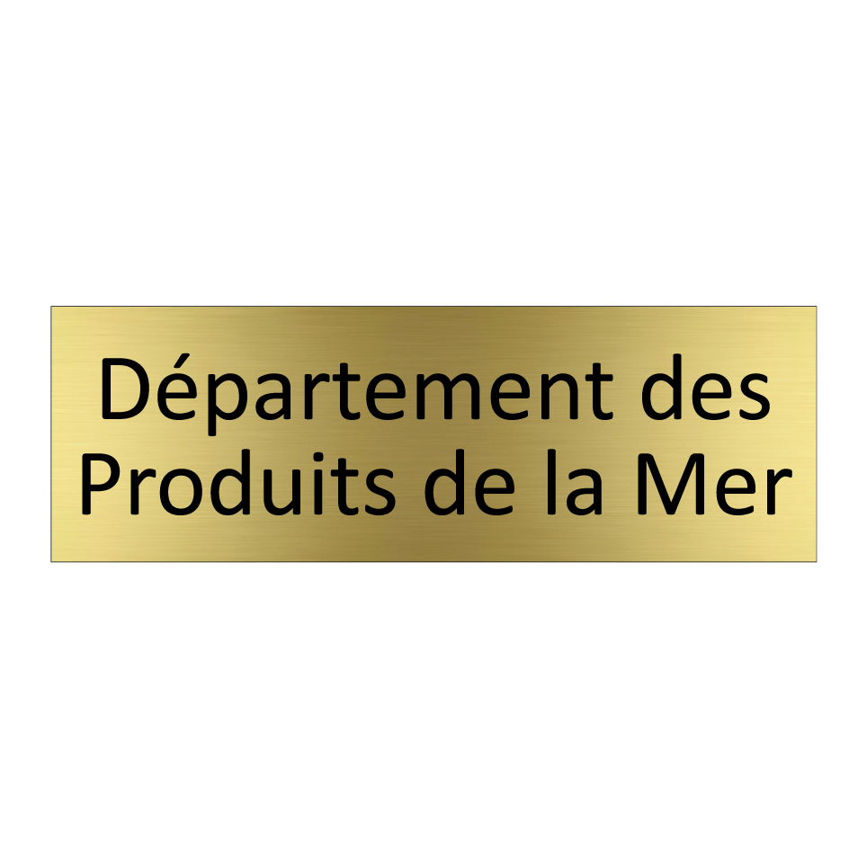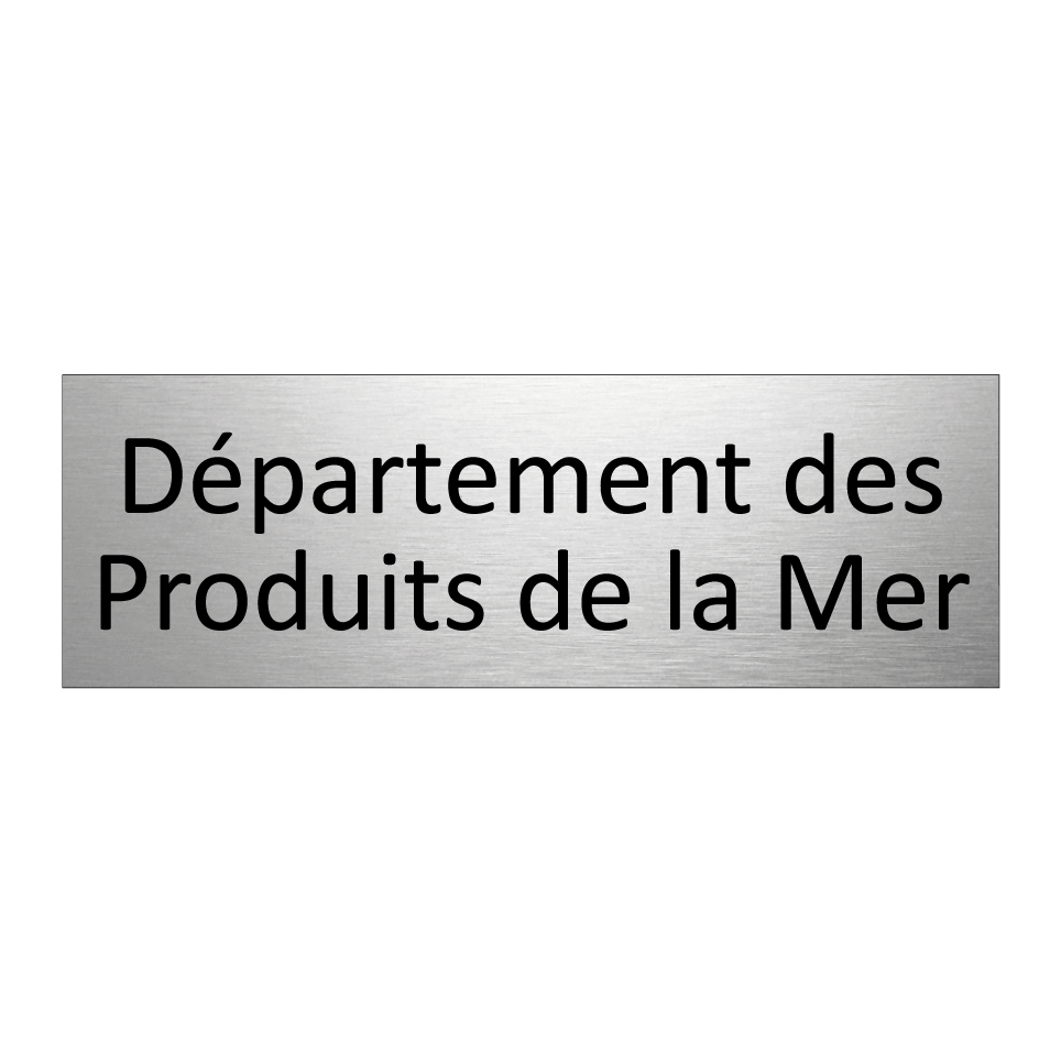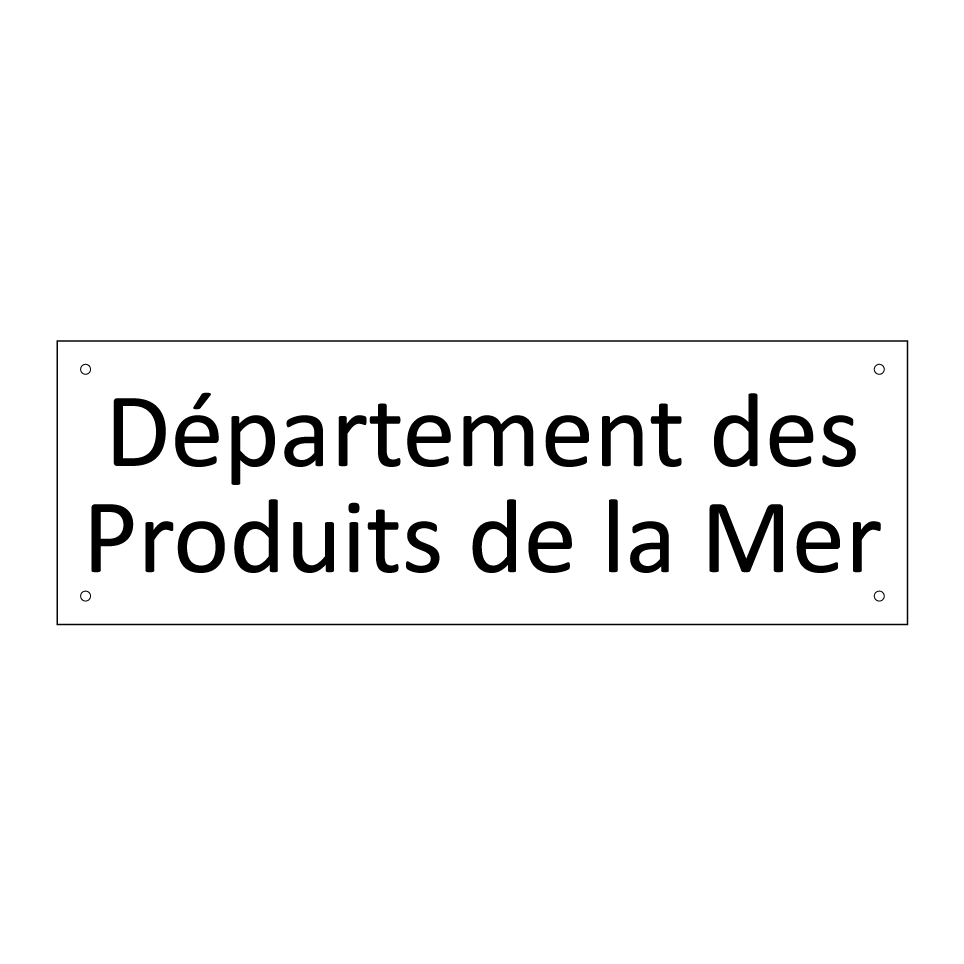 Panneau d'information avec le texte Département des Produits de la Mer.
