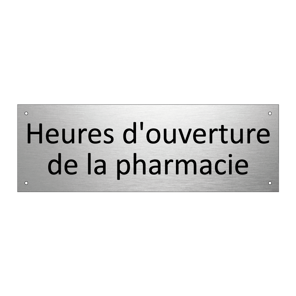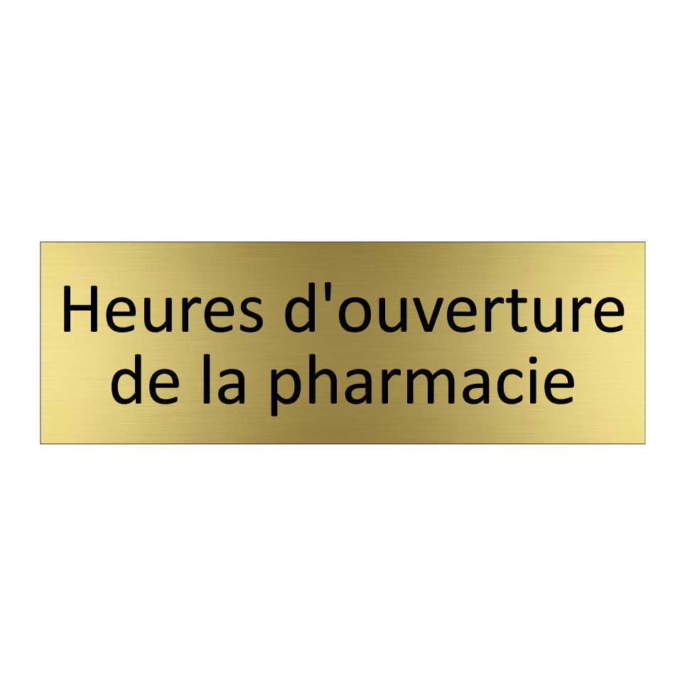 Panneau d'information avec le texte Heures d'ouverture de la pharmacie.