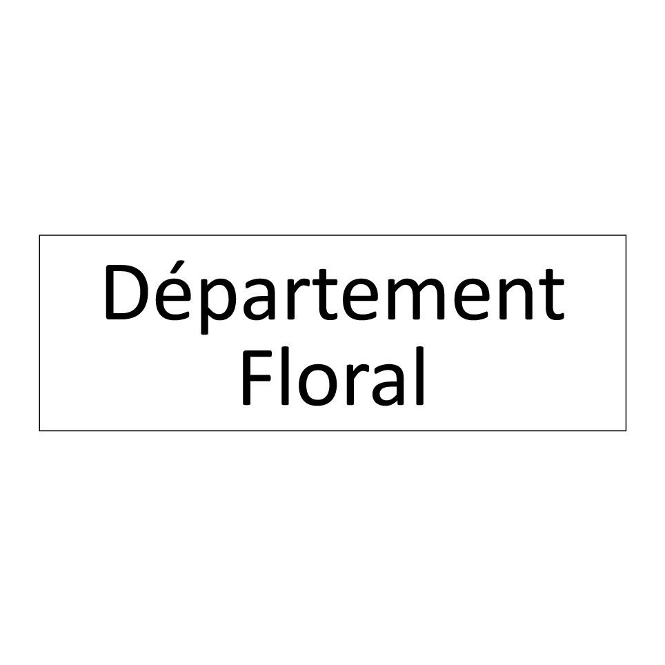 Cette enseigne "Département Floral" est idéale pour embellir et organiser vos espaces dédiés aux fleurs. Elle trouve sa place parfaite dans les jardineries, les serres ou les magasins de fleurs, guidant les clients vers la section florale. En plus, elle peut être utilisée lors d'événements comme les expositions florales ou les marchés de producteurs pour indiquer clairement les zones dédiées aux plantes et fleurs. Cette pancarte ajoute une touche d'élégance et de clarté à tout environnement où elle est installée, facilitant l'orientation des visiteurs.