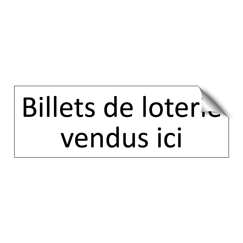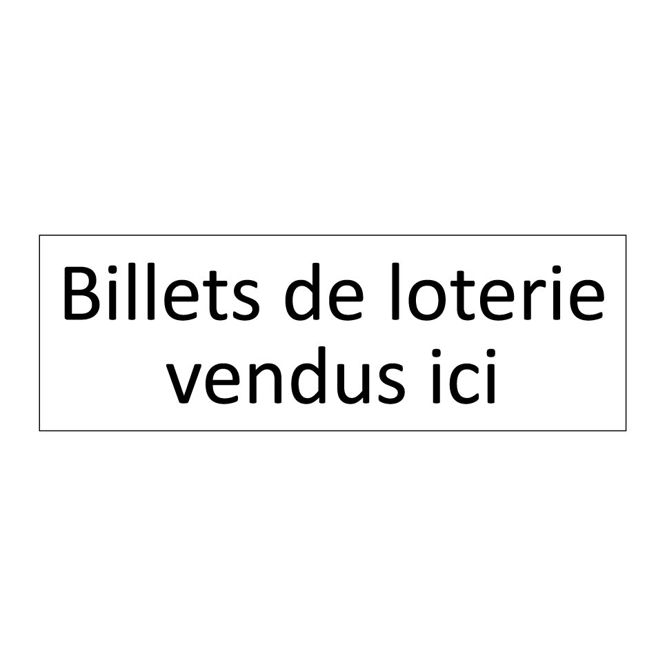 Panneau d'information avec le texte Billets de loterie vendus ici.