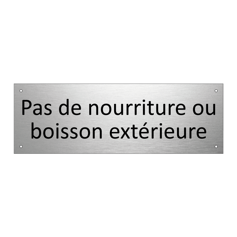 Panneau d'information avec le texte Pas de nourriture ou boisson extérieure.