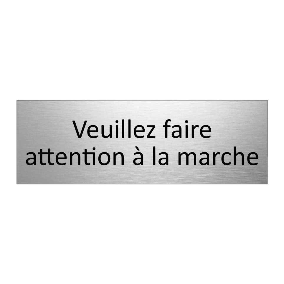 Panneau d'information avec le texte Veuillez faire attention à la marche.