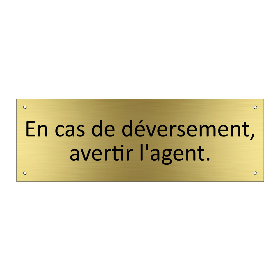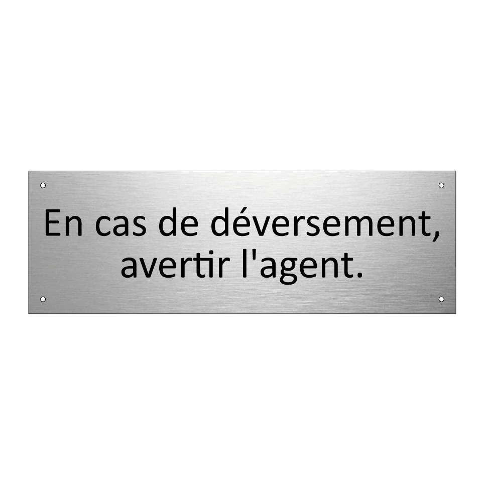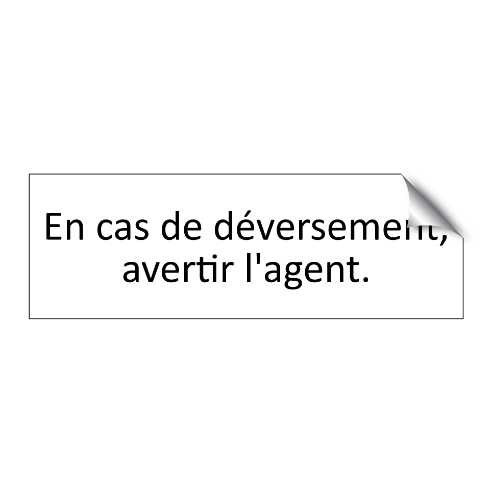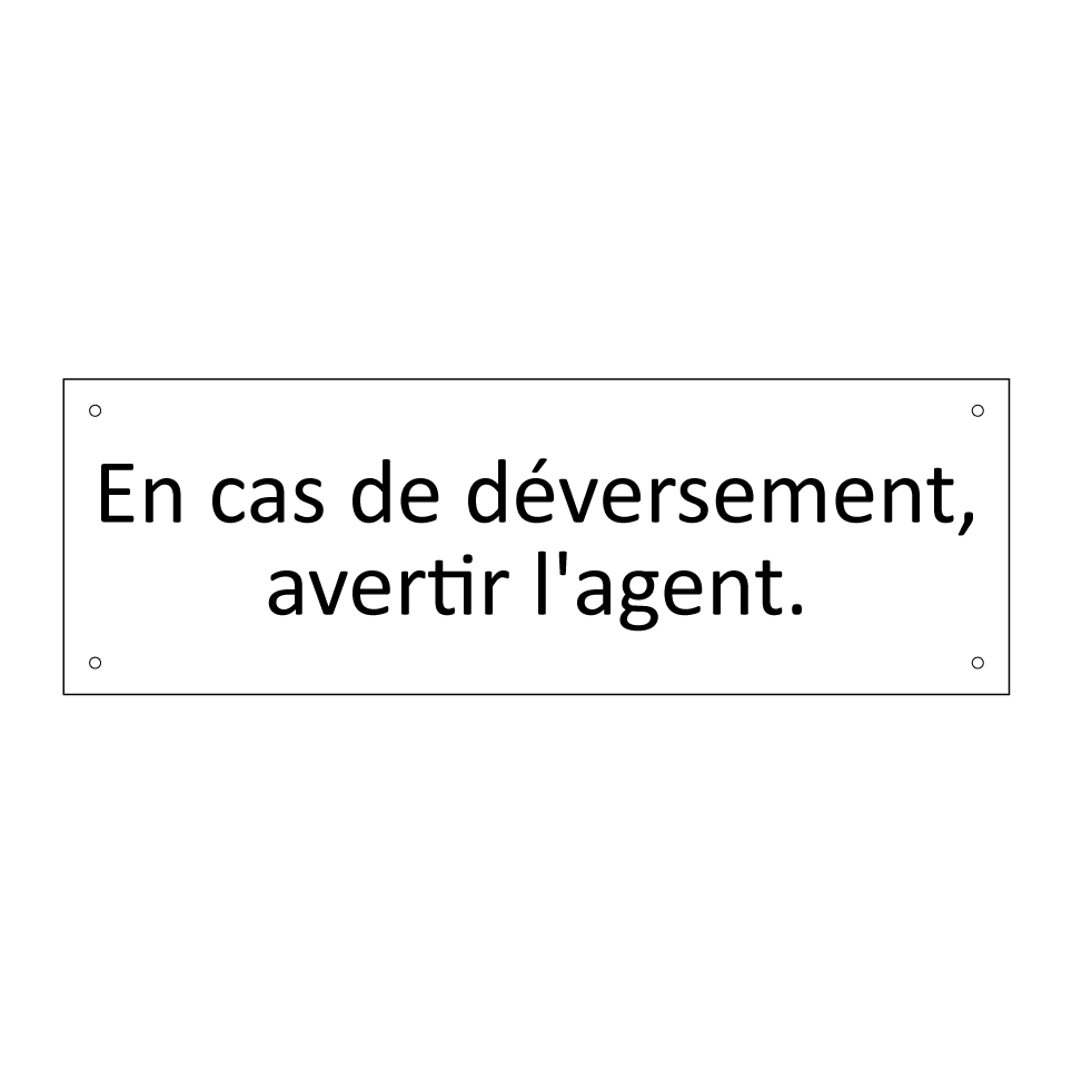 Panneau d'information avec le texte En cas de déversement, avertir l'agent..