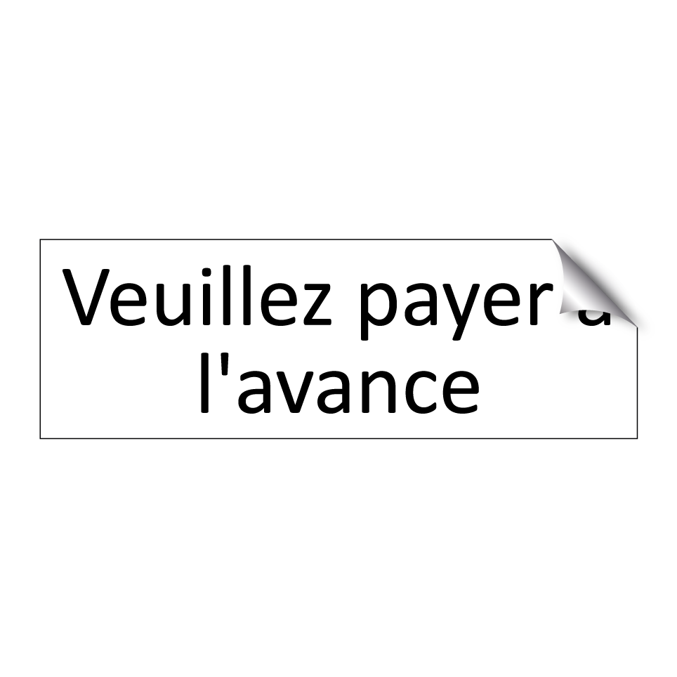 Panneau d'information avec le texte Veuillez payer à l'avance.