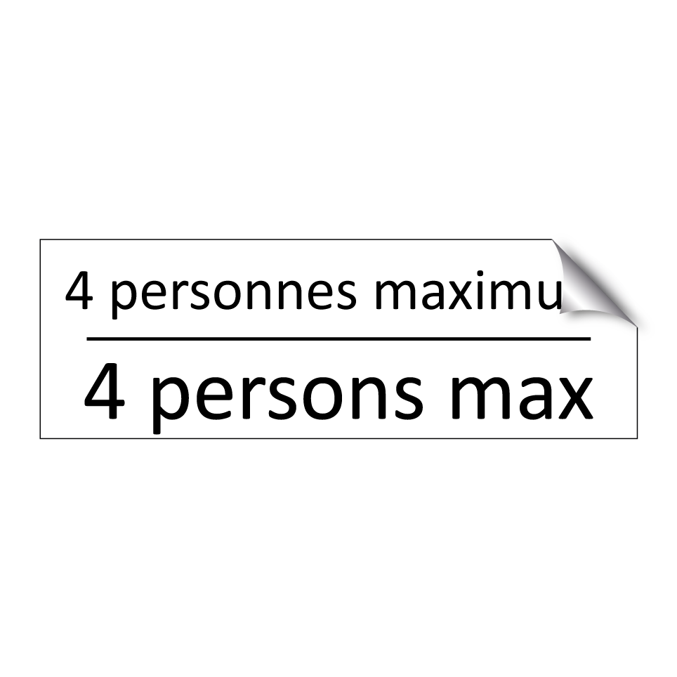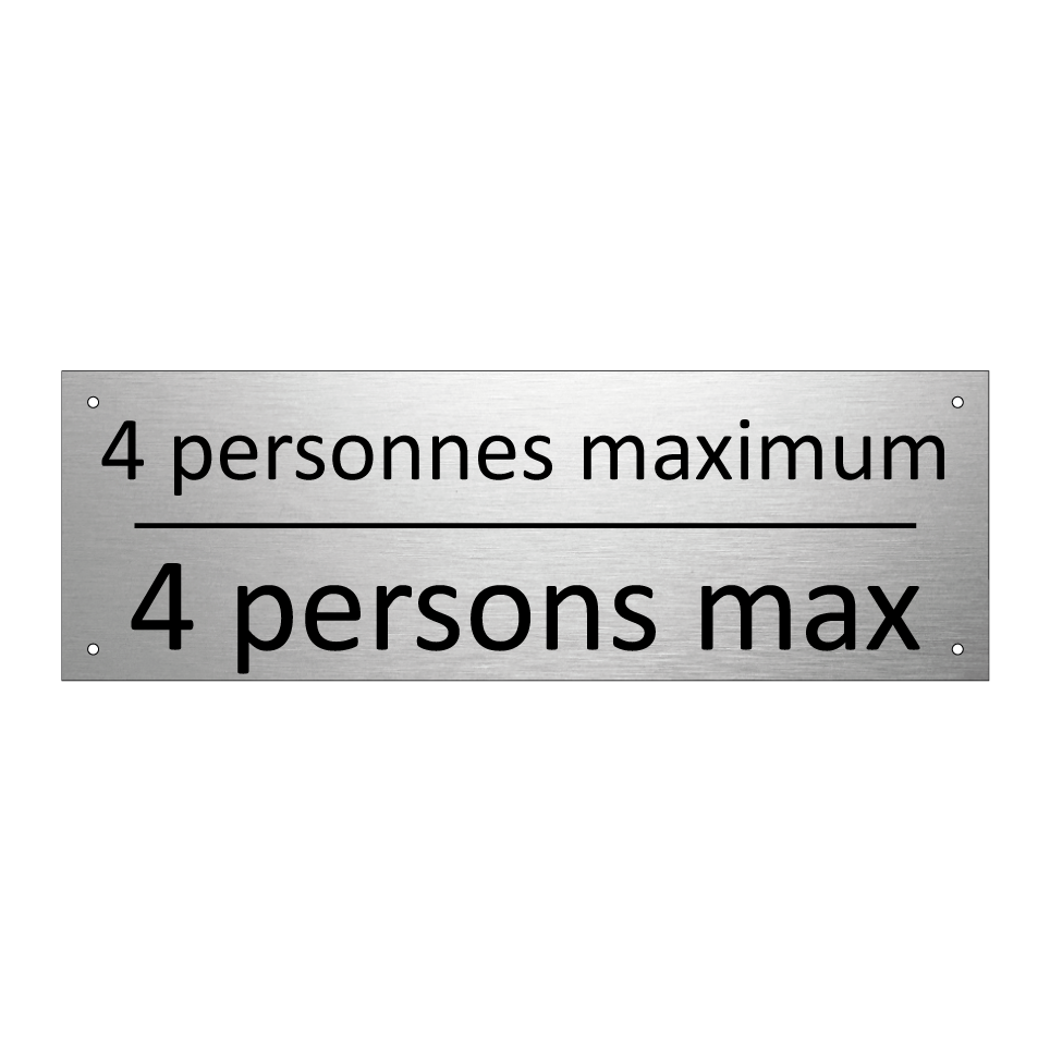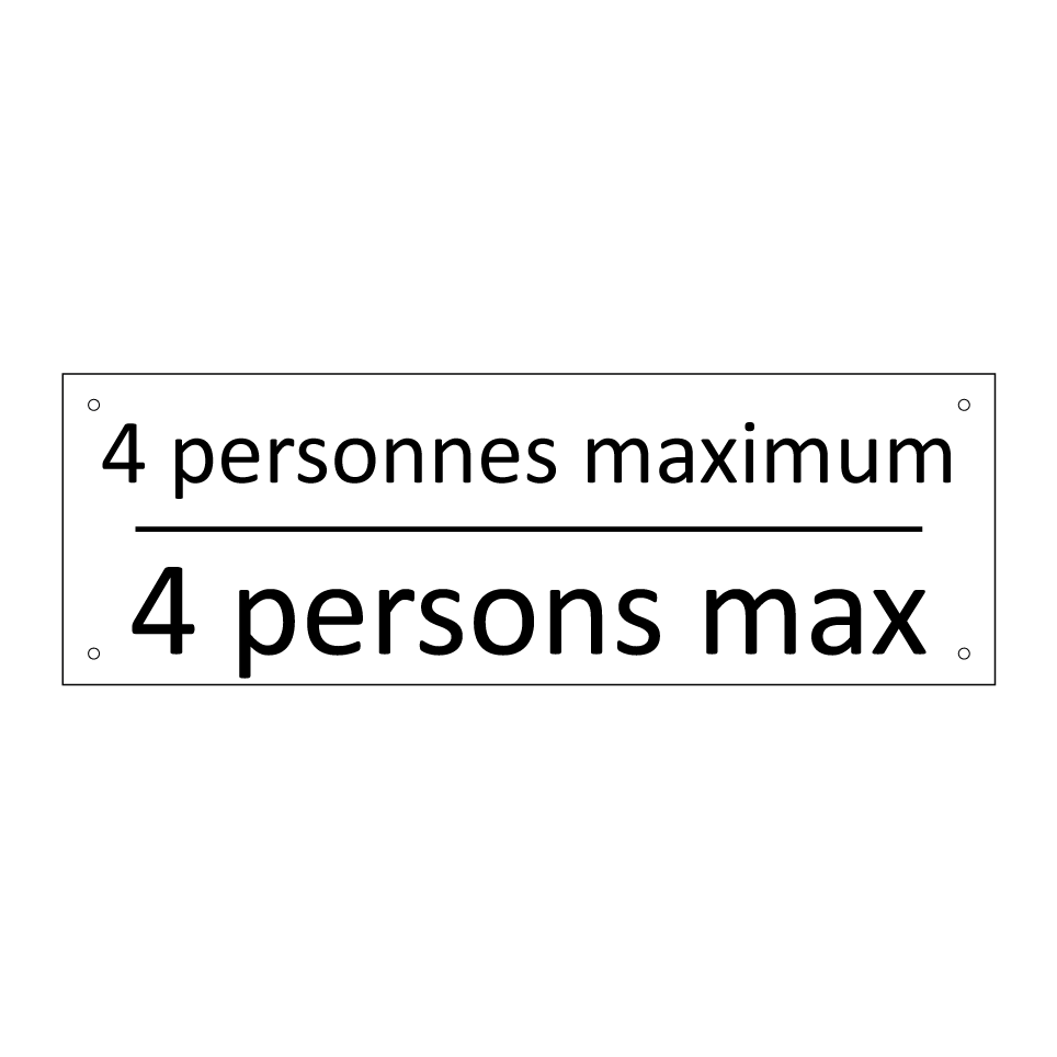 Panneau d'information avec le texte 4 personnes maximum|4 persons max en français et en anglais.