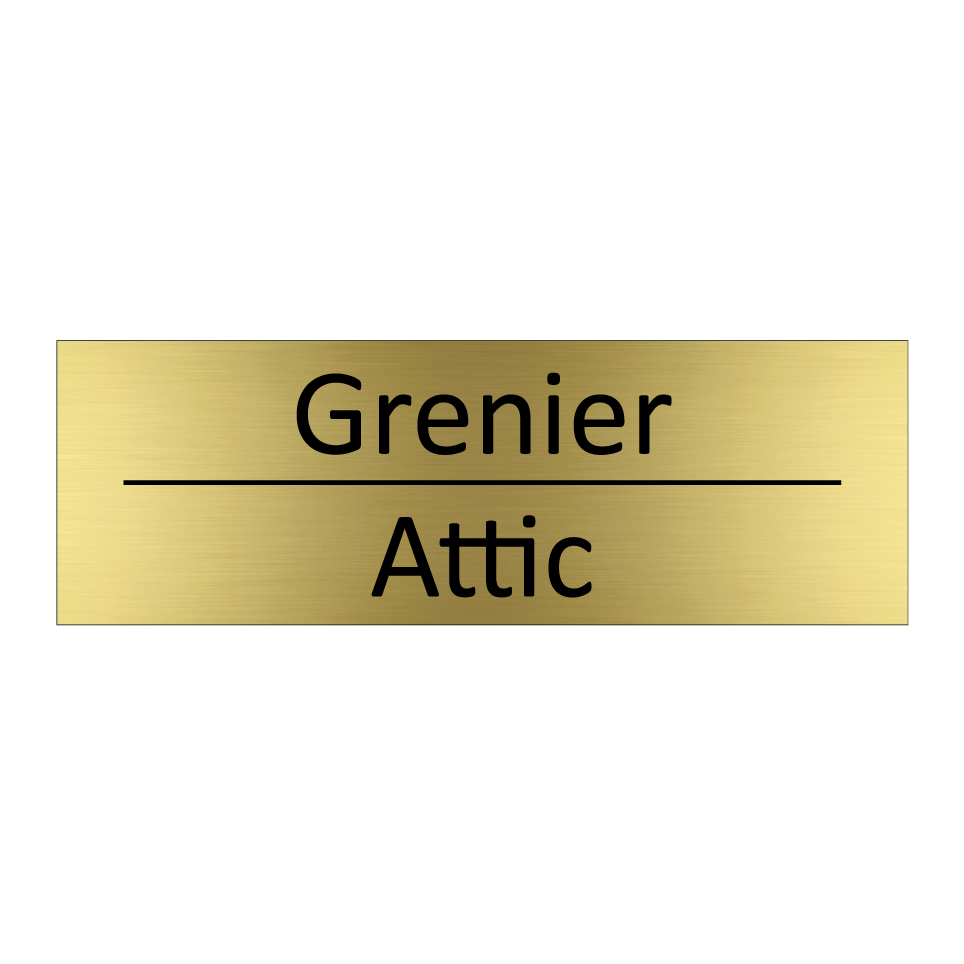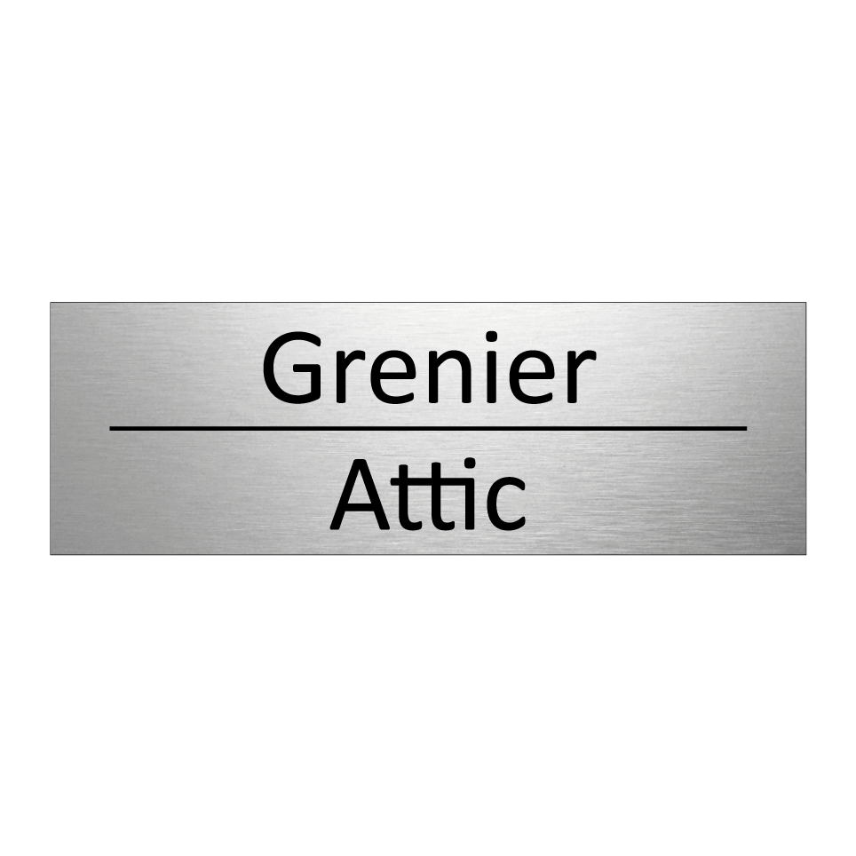 Panneau d'information avec le texte Grenier|Attic en français et en anglais.
