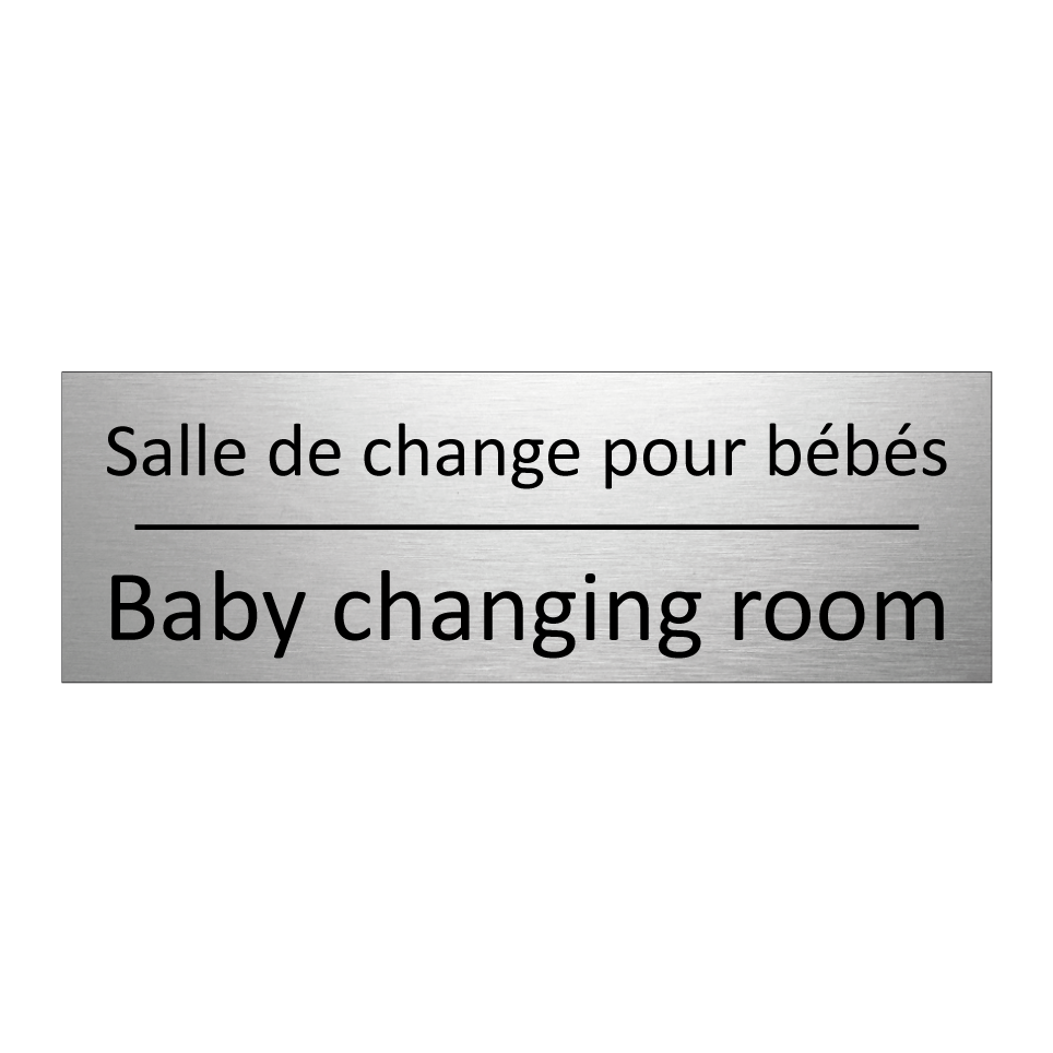 Panneau d'information avec le texte Salle de change pour bébés|Baby changing room en français et en anglais.