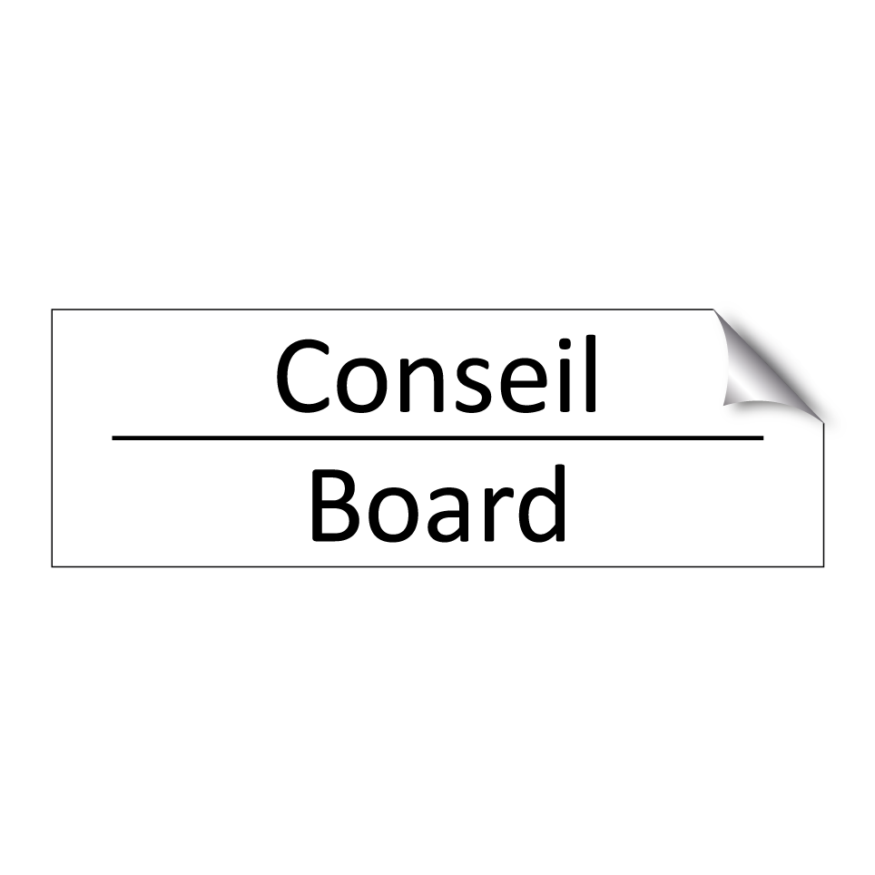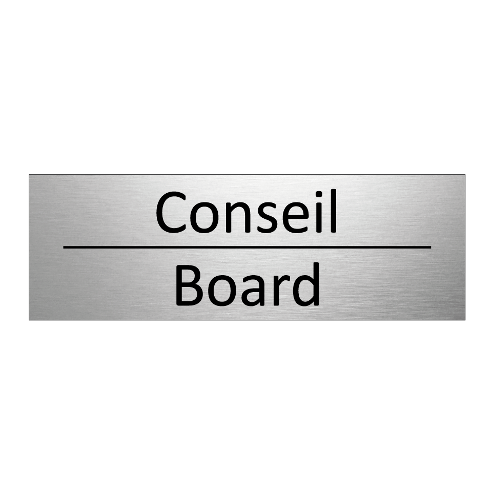 Panneau d'information avec le texte Conseil|Board en français et en anglais.