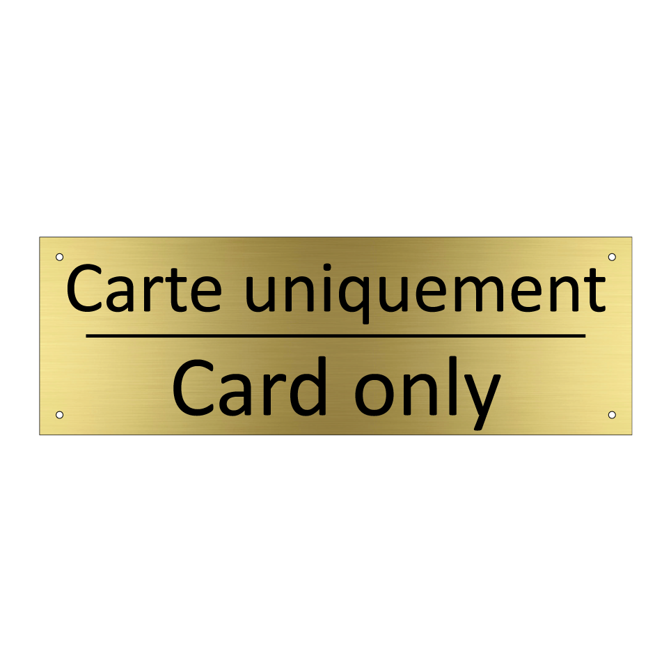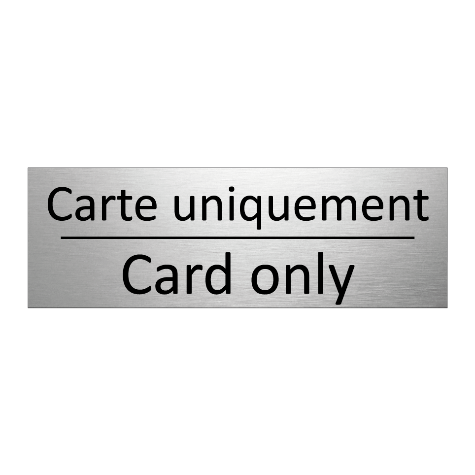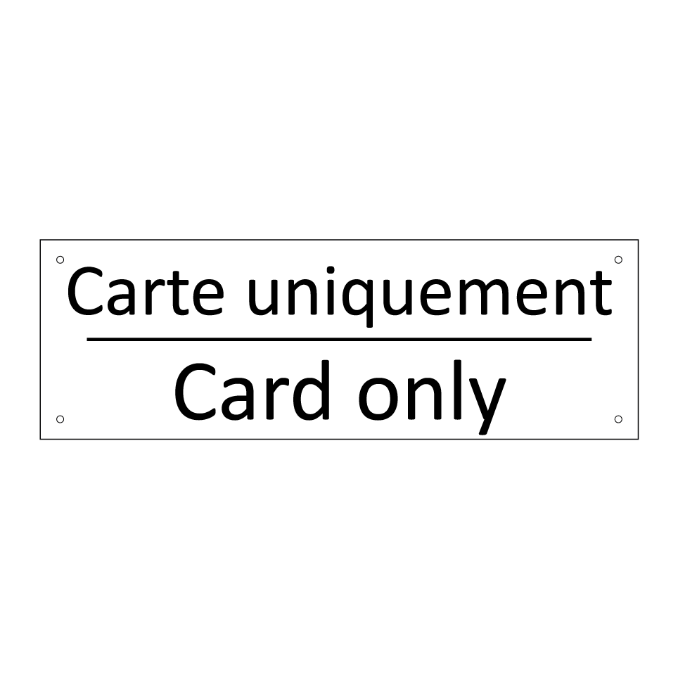 Panneau d'information avec le texte Carte uniquement|Card only en français et en anglais.