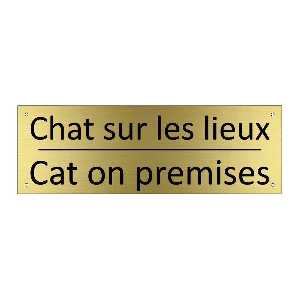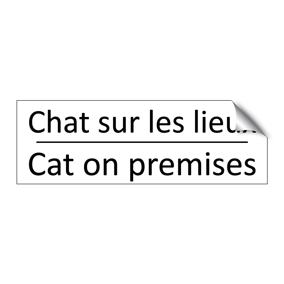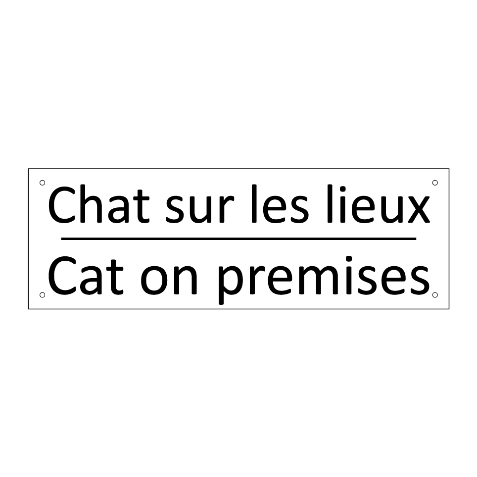 Panneau d'information avec le texte Chat sur les lieux|Cat on premises en français et en anglais.