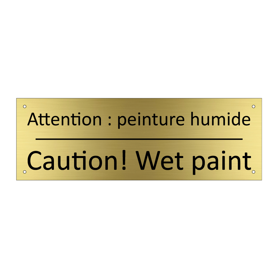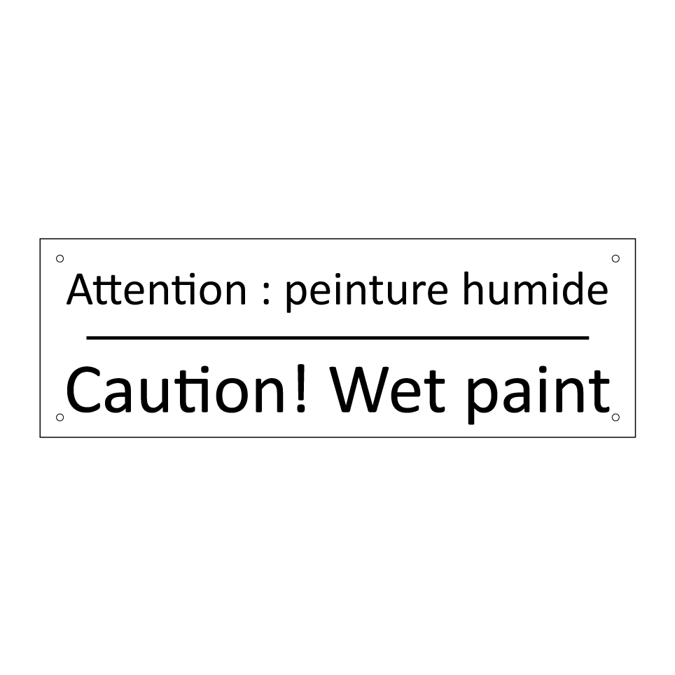 Panneau d'information avec le texte Attention : peinture humide|Caution! Wet paint en français et en anglais.