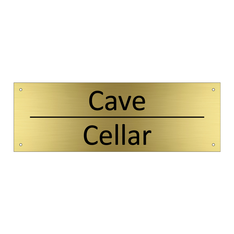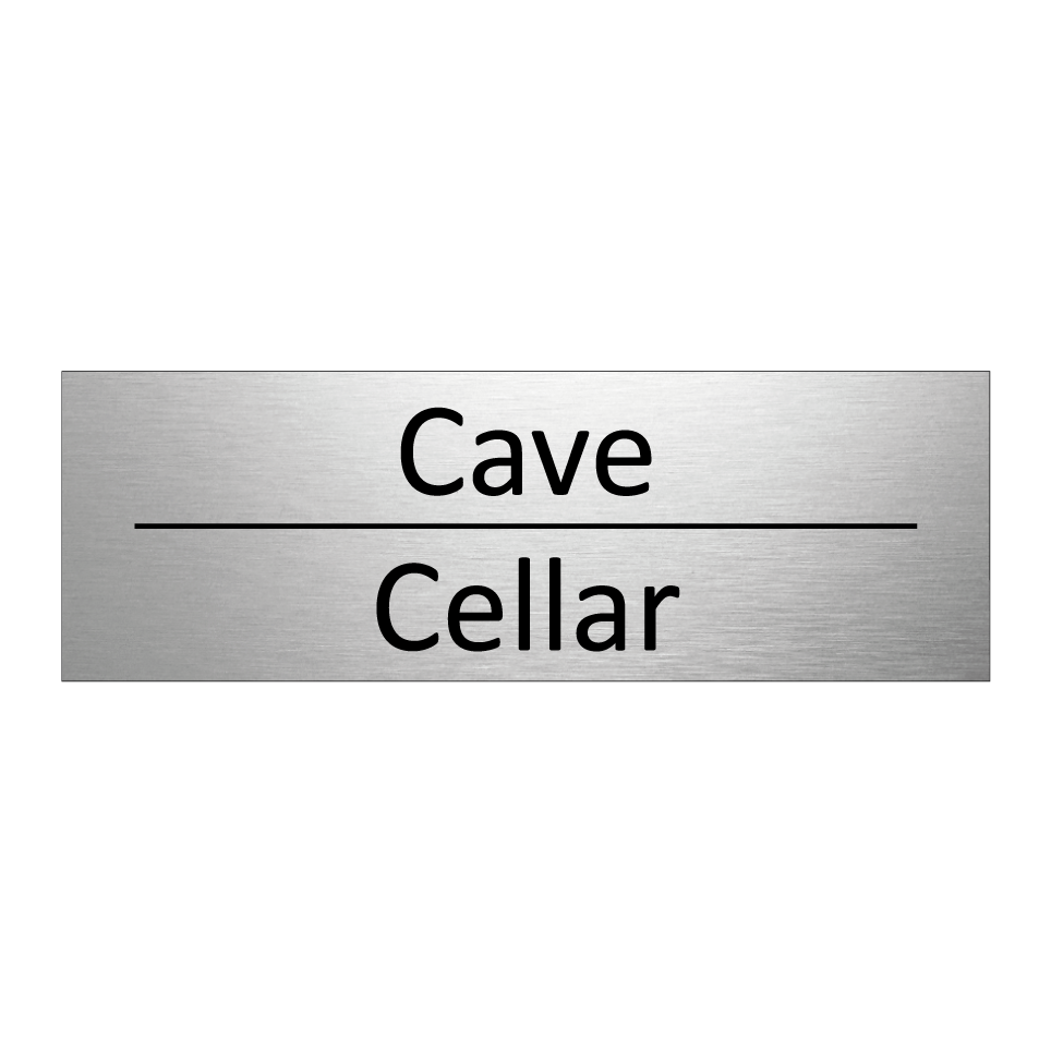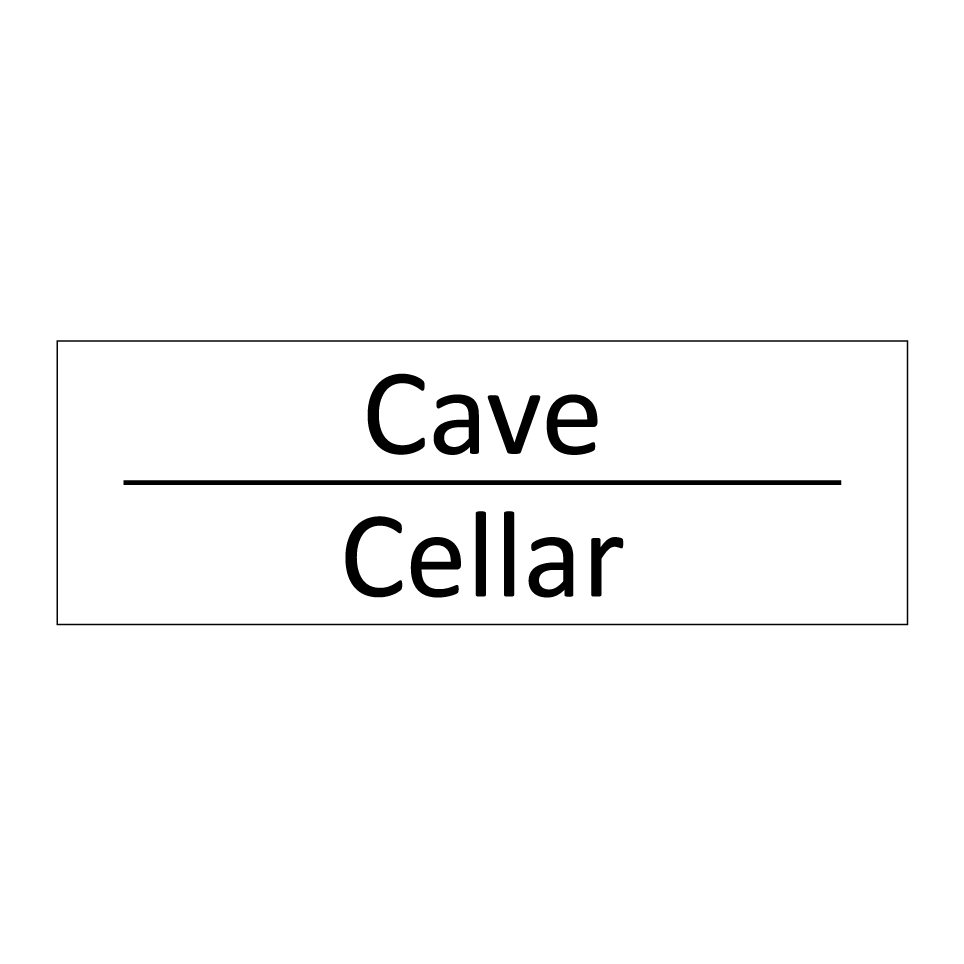 Panneau d'information avec le texte Cave|Cellar en français et en anglais.