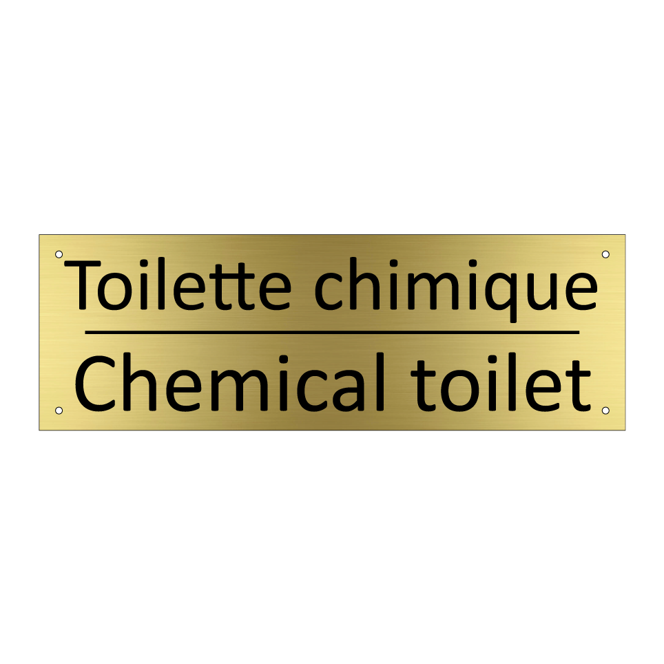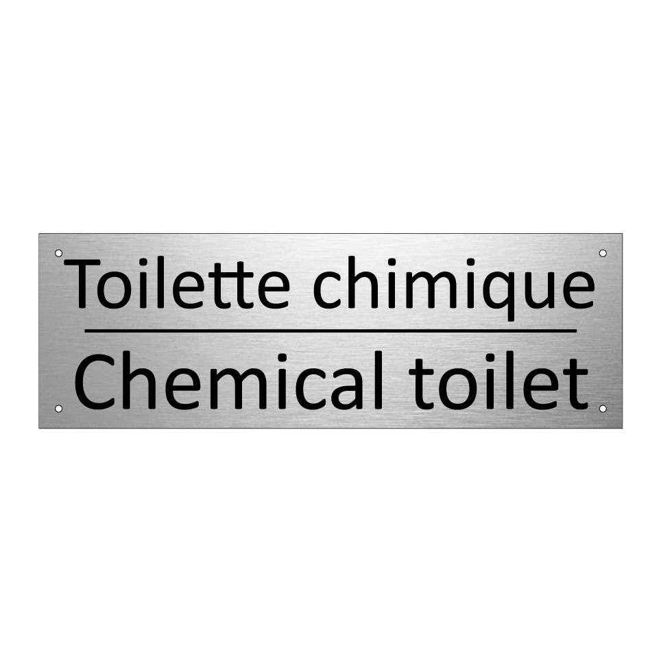 Panneau d'information avec le texte Toilette chimique|Chemical toilet en français et en anglais.