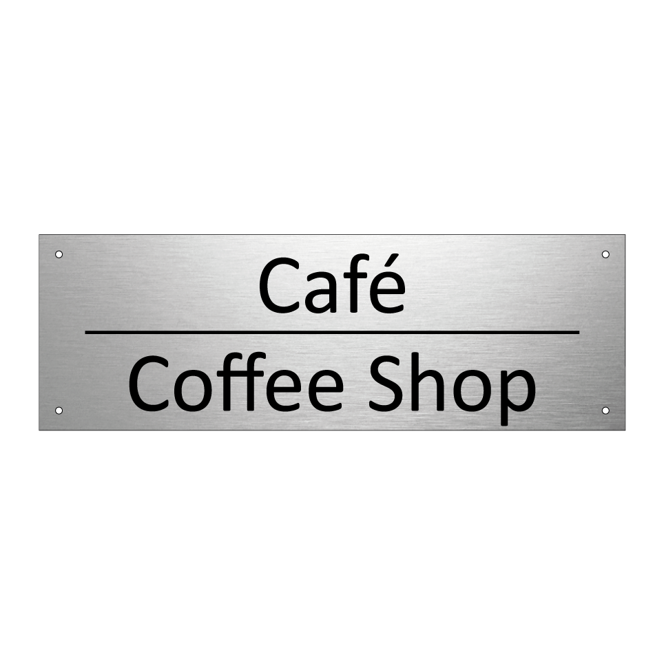 Panneau d'information avec le texte Café|Coffee Shop en français et en anglais.