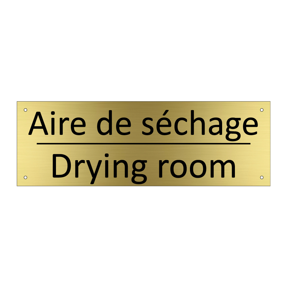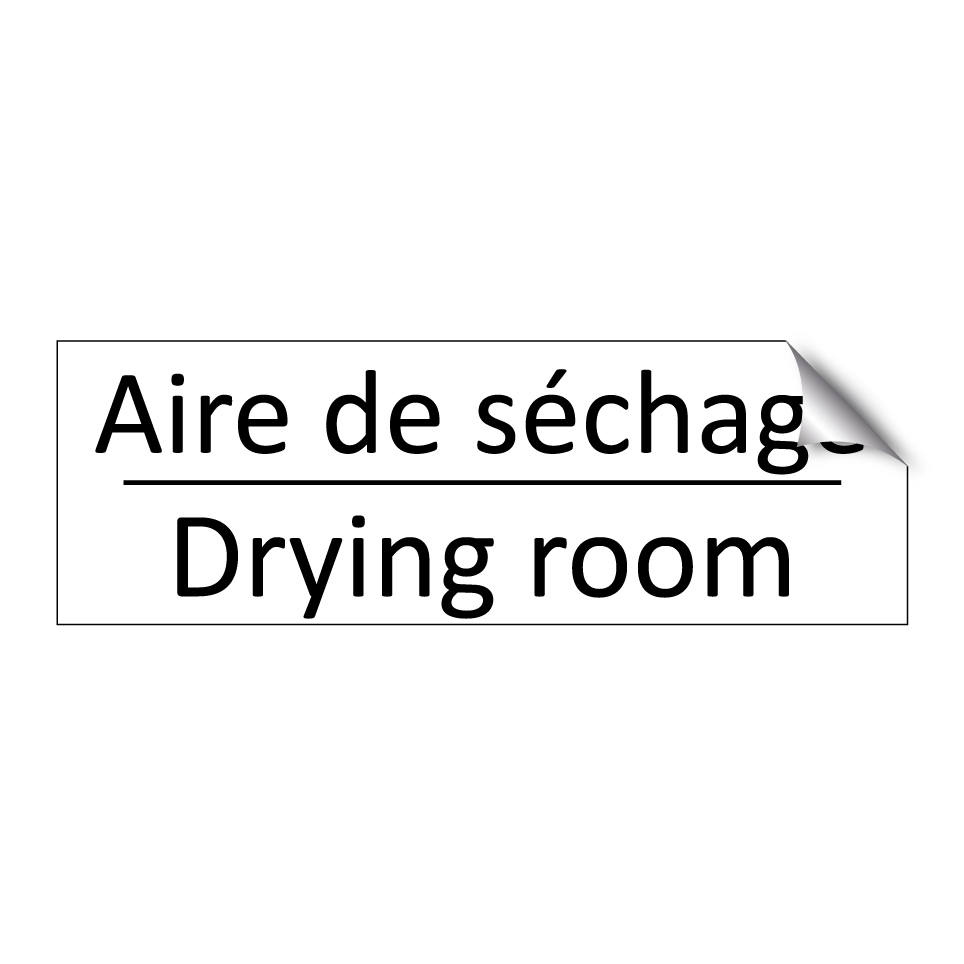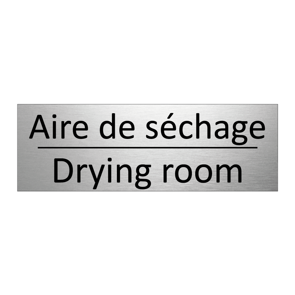 Panneau d'information avec le texte Aire de séchage|Drying room en français et en anglais.