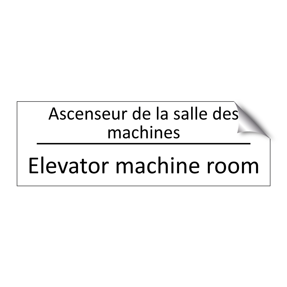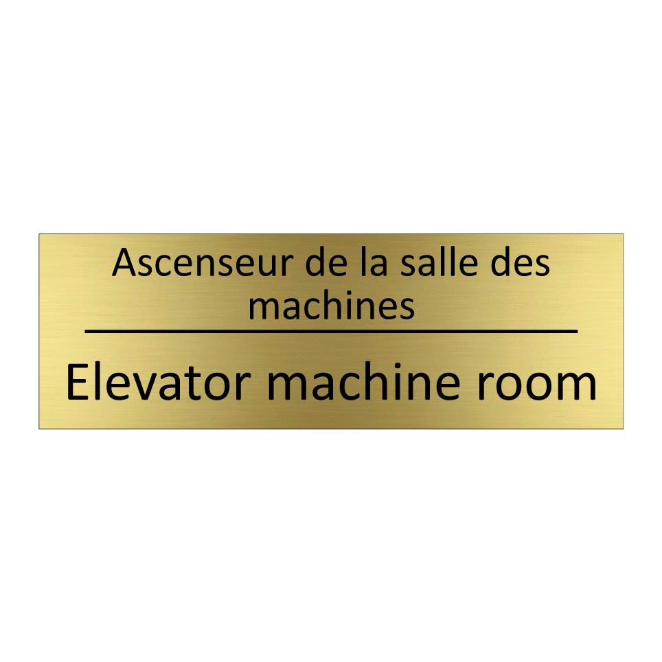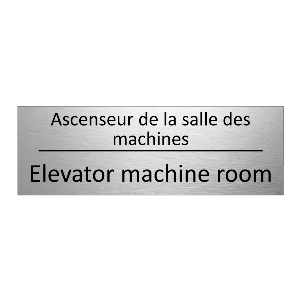 Panneau d'information avec le texte Ascenseur de la salle des machines|Elevator machine room en français et en anglais.