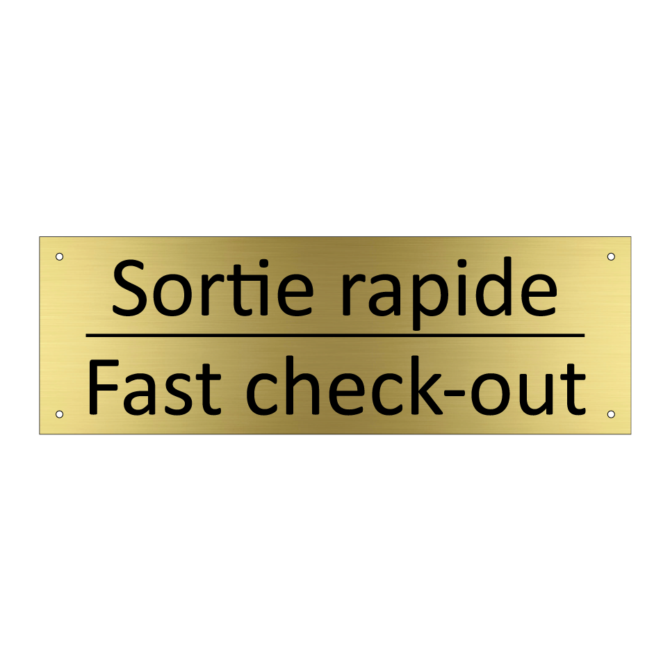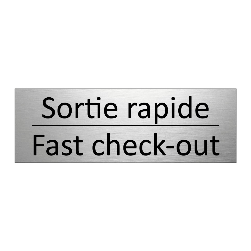 Panneau d'information avec le texte Sortie rapide|Fast check-out en français et en anglais.