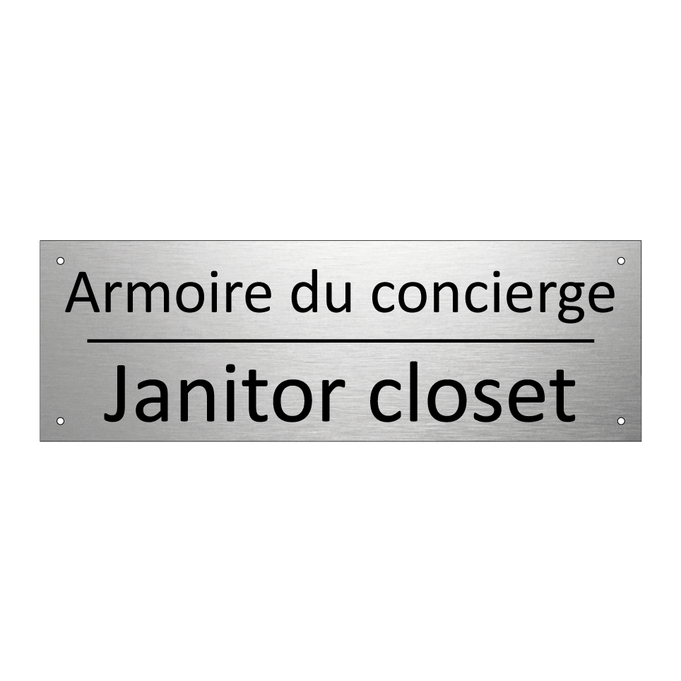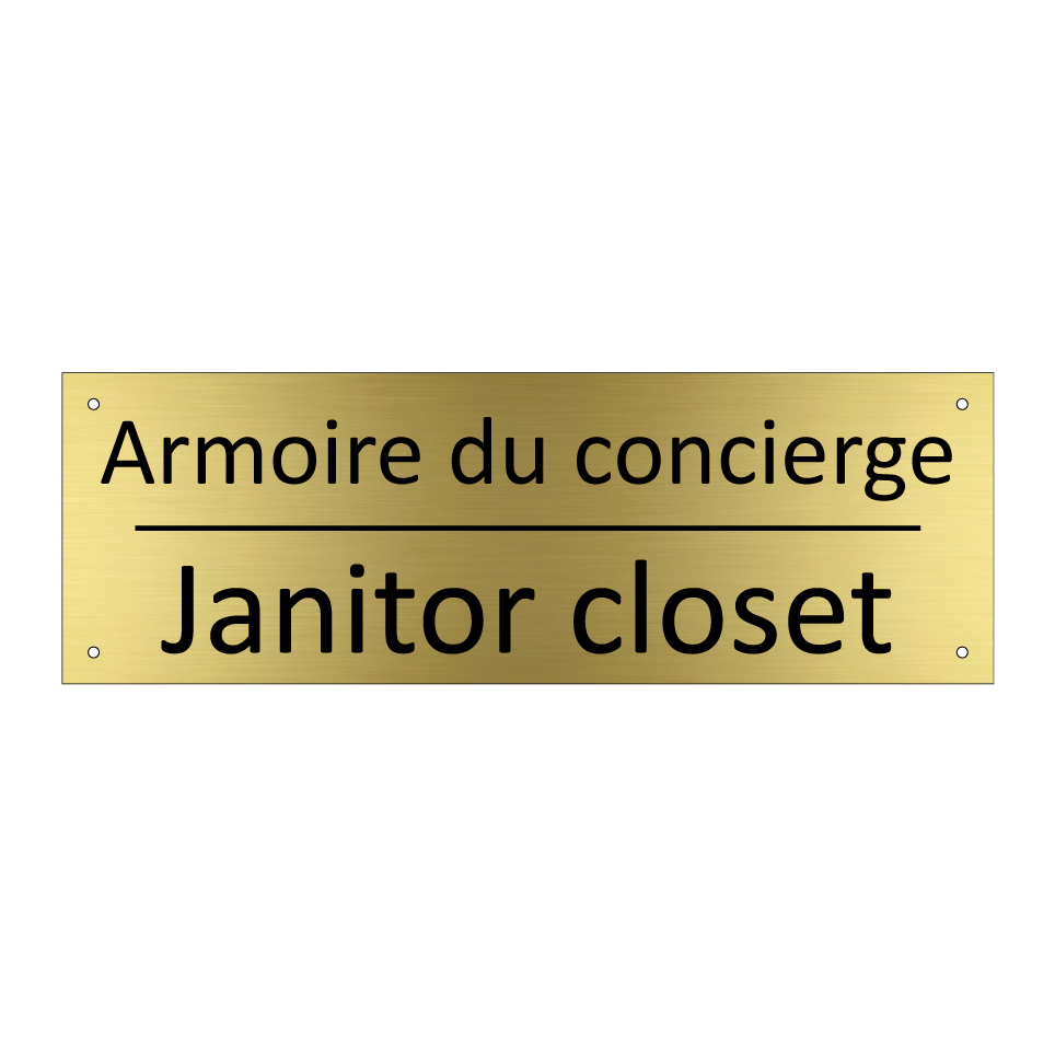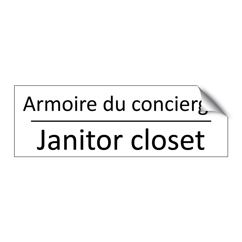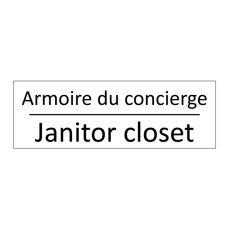 Panneau d'information avec le texte Armoire du concierge|Janitor closet en français et en anglais.
