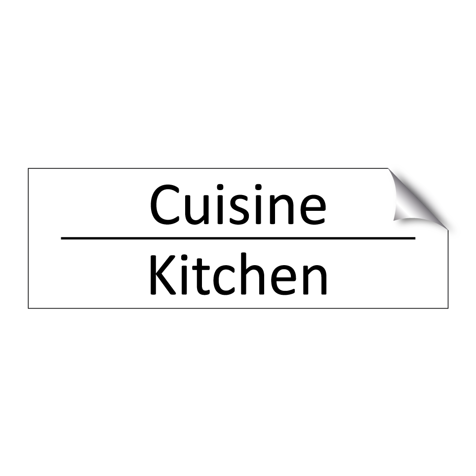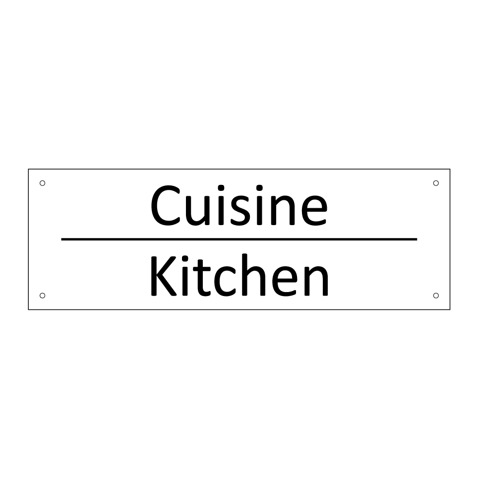 Panneau d'information avec le texte Cuisine|Kitchen en français et en anglais.