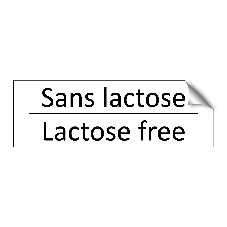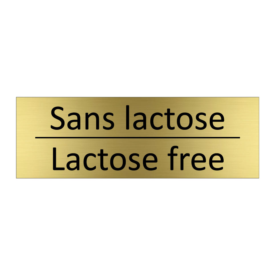 Panneau d'information avec le texte Sans lactose|Lactose free en français et en anglais.