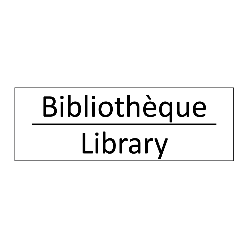 Panneau d'information avec le texte Bibliothèque|Library en français et en anglais.