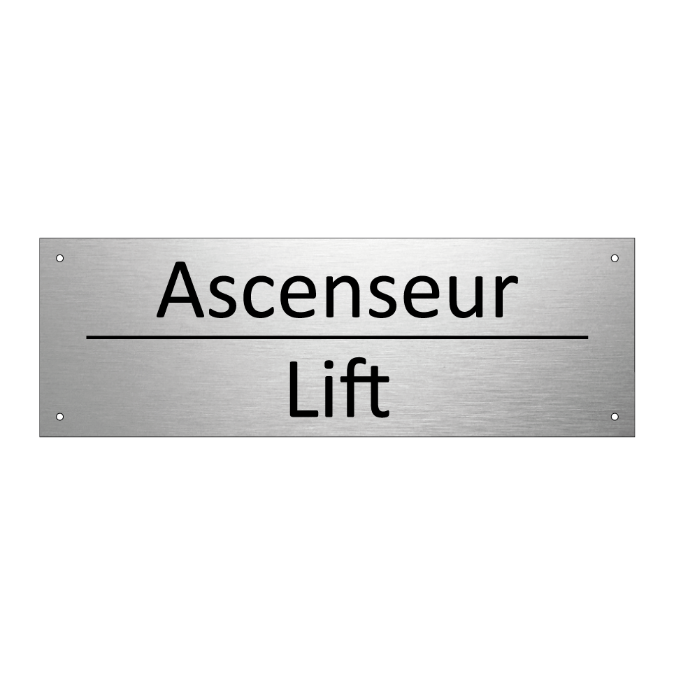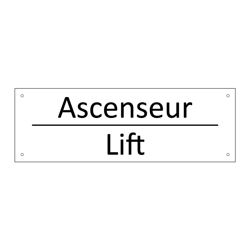 Panneau d'information avec le texte Ascenseur|Lift en français et en anglais.