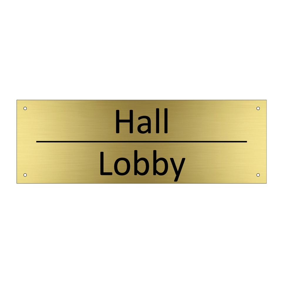 Panneau d'information avec le texte Hall|Lobby en français et en anglais.
