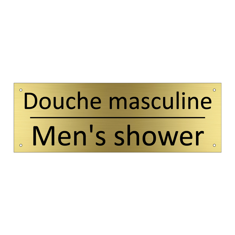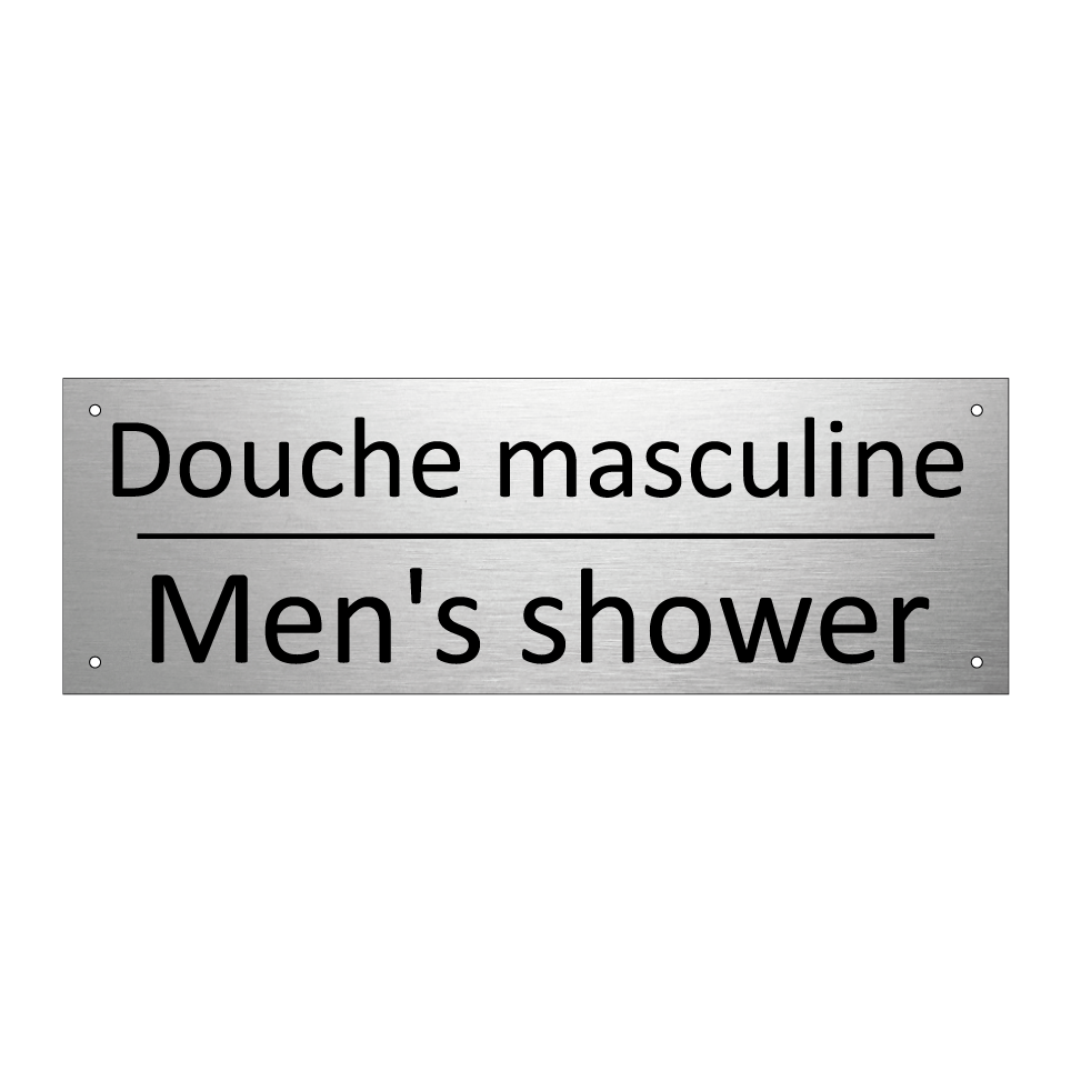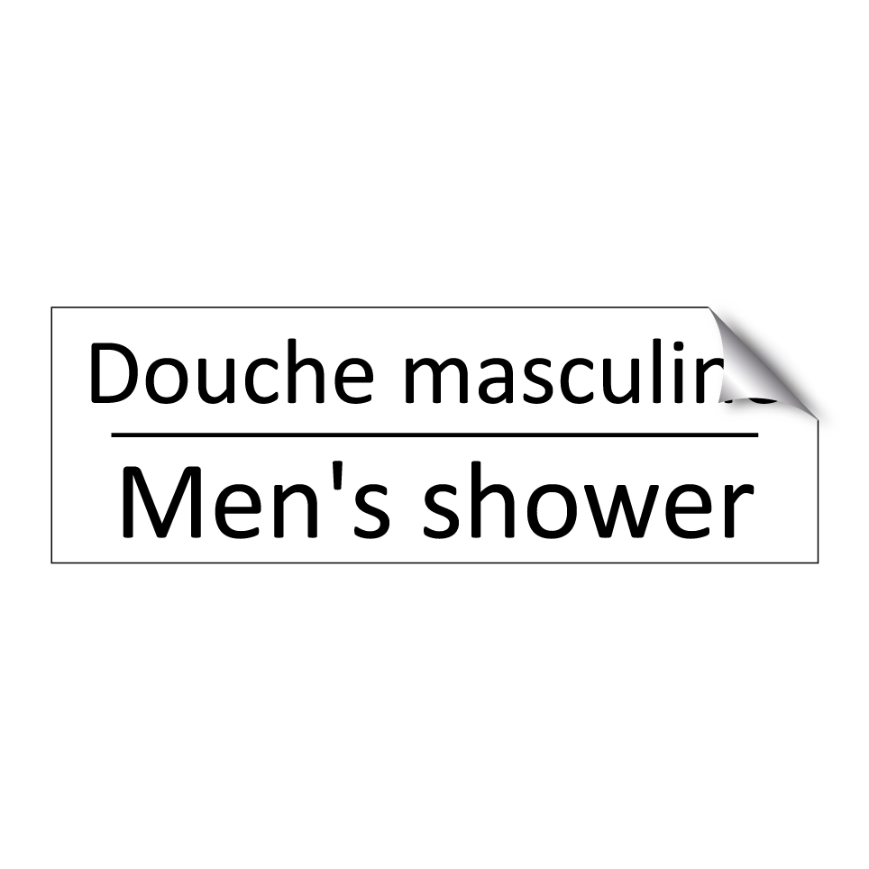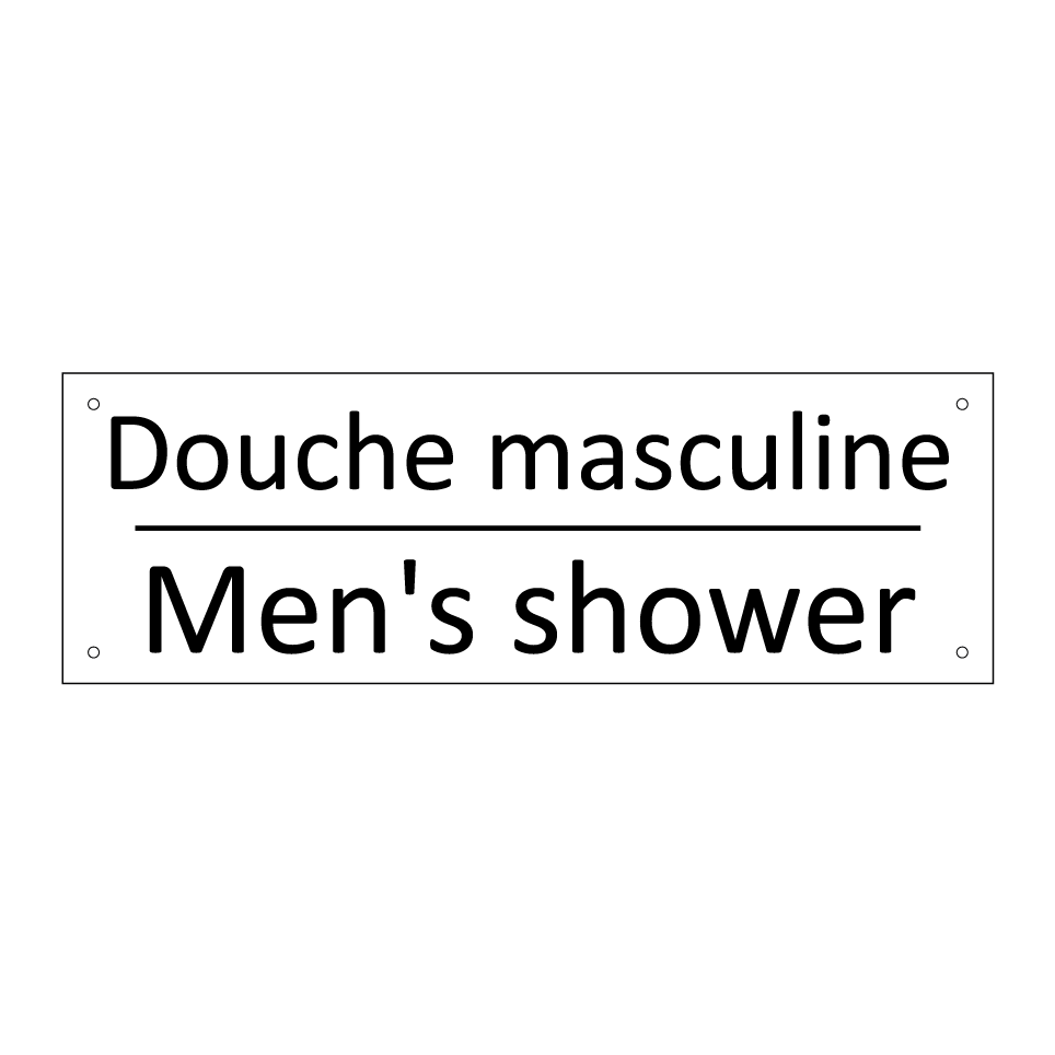 Panneau d'information avec le texte Douche masculine|Men's shower en français et en anglais.