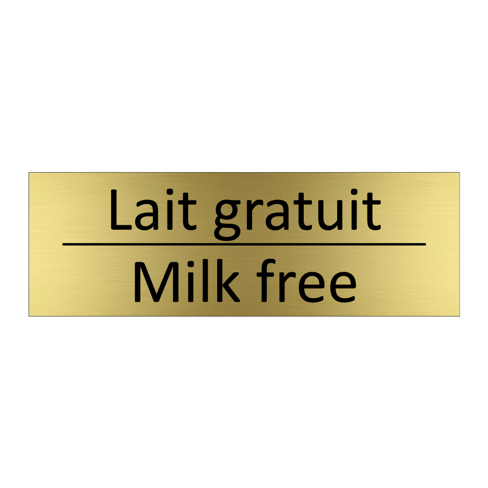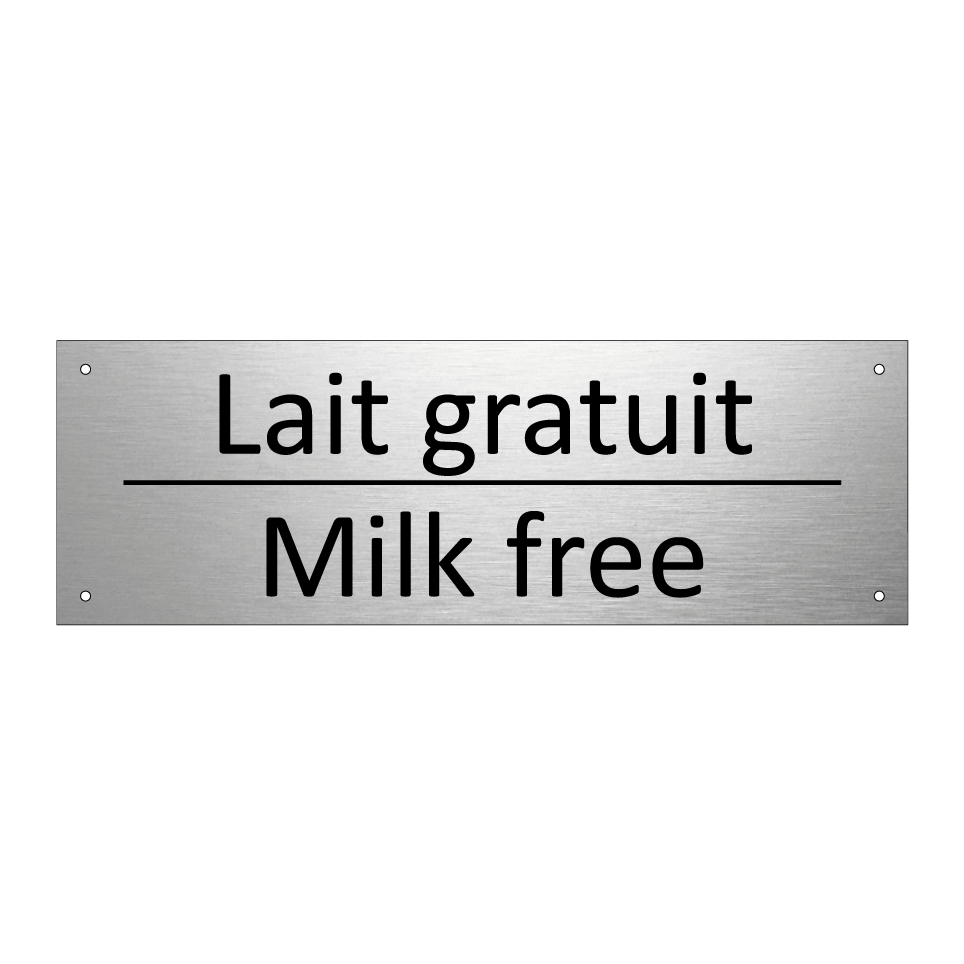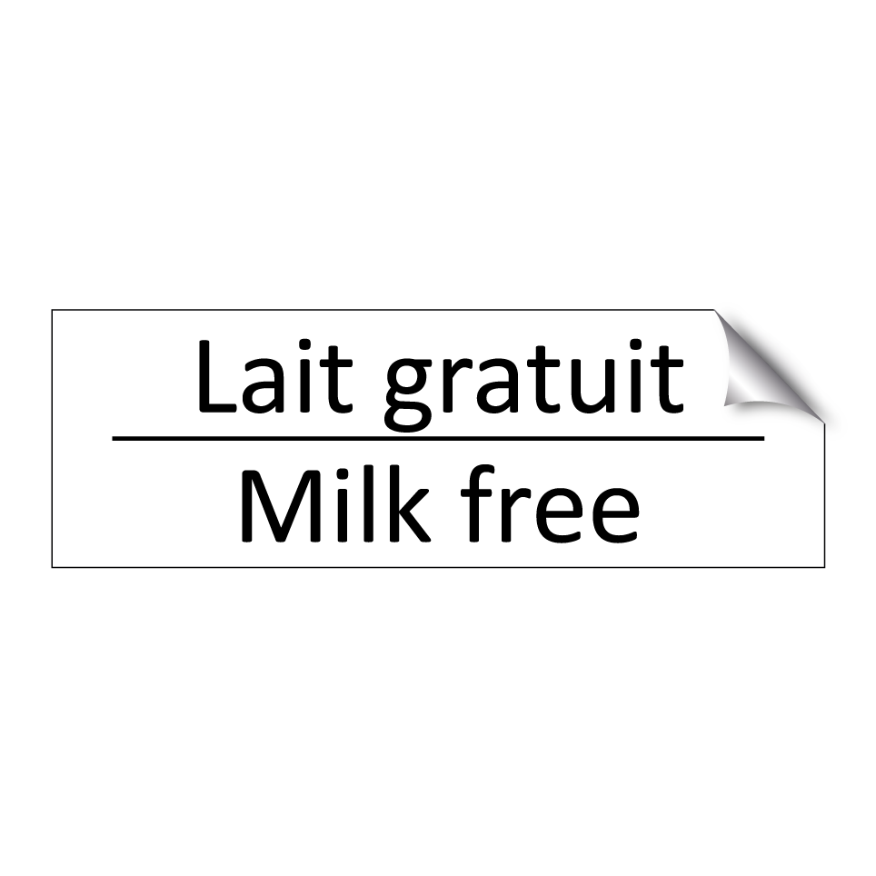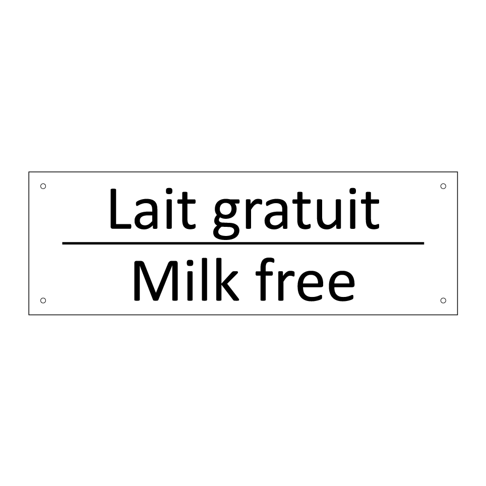 Panneau d'information avec le texte Lait gratuit|Milk free en français et en anglais.