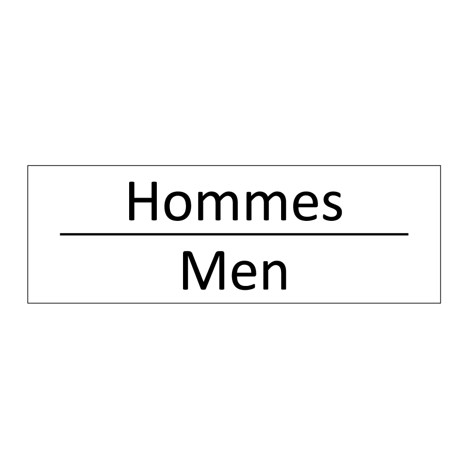 Panneau d'information avec le texte Hommes|Men en français et en anglais.