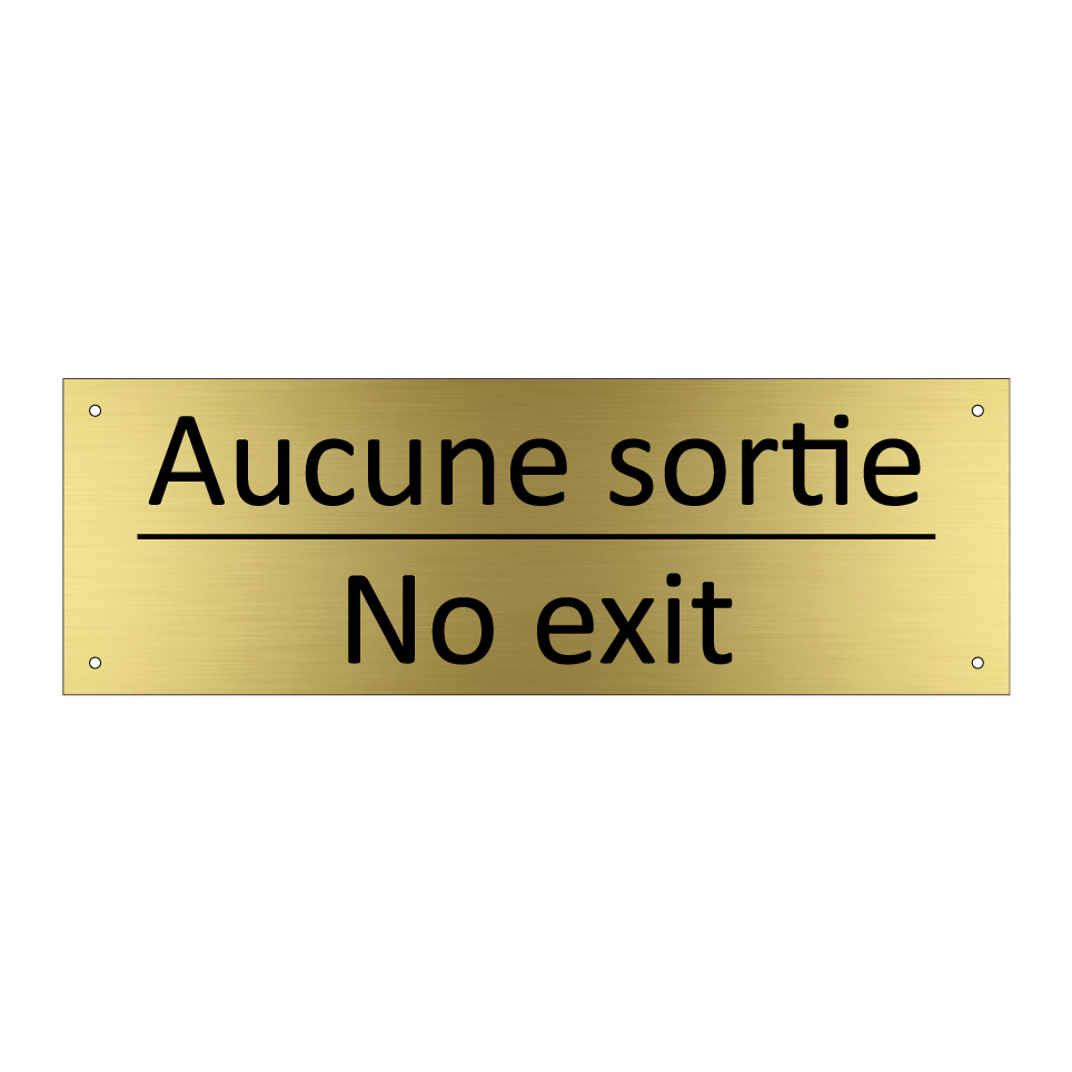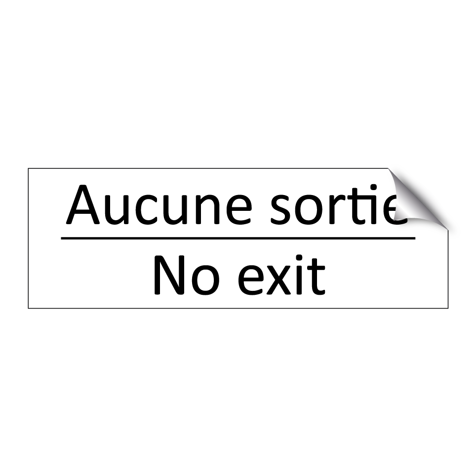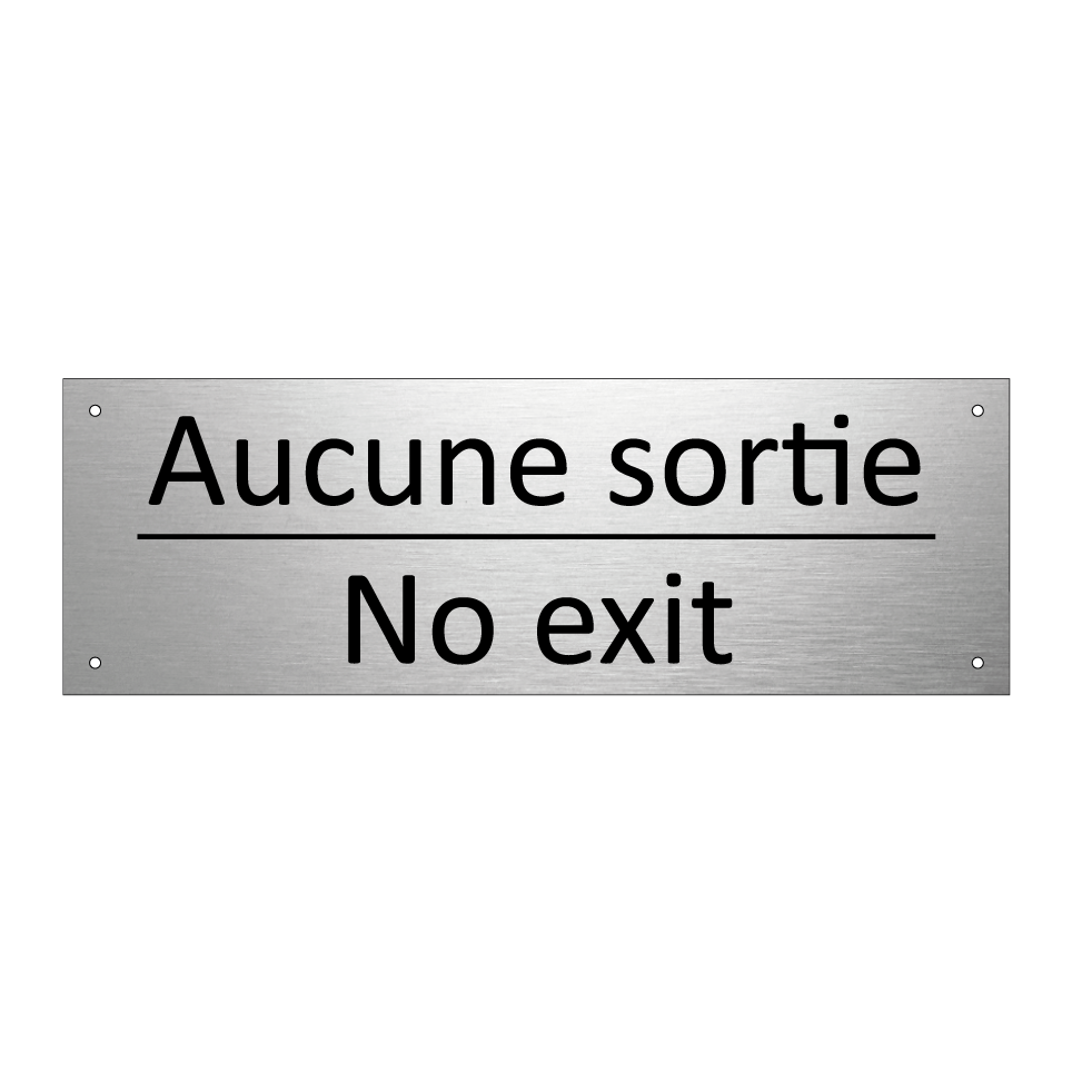 Panneau d'information avec le texte Aucune sortie|No exit en français et en anglais.