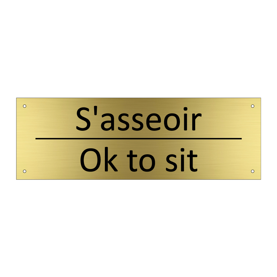 Panneau d'information avec le texte S'asseoir|Ok to sit en français et en anglais.