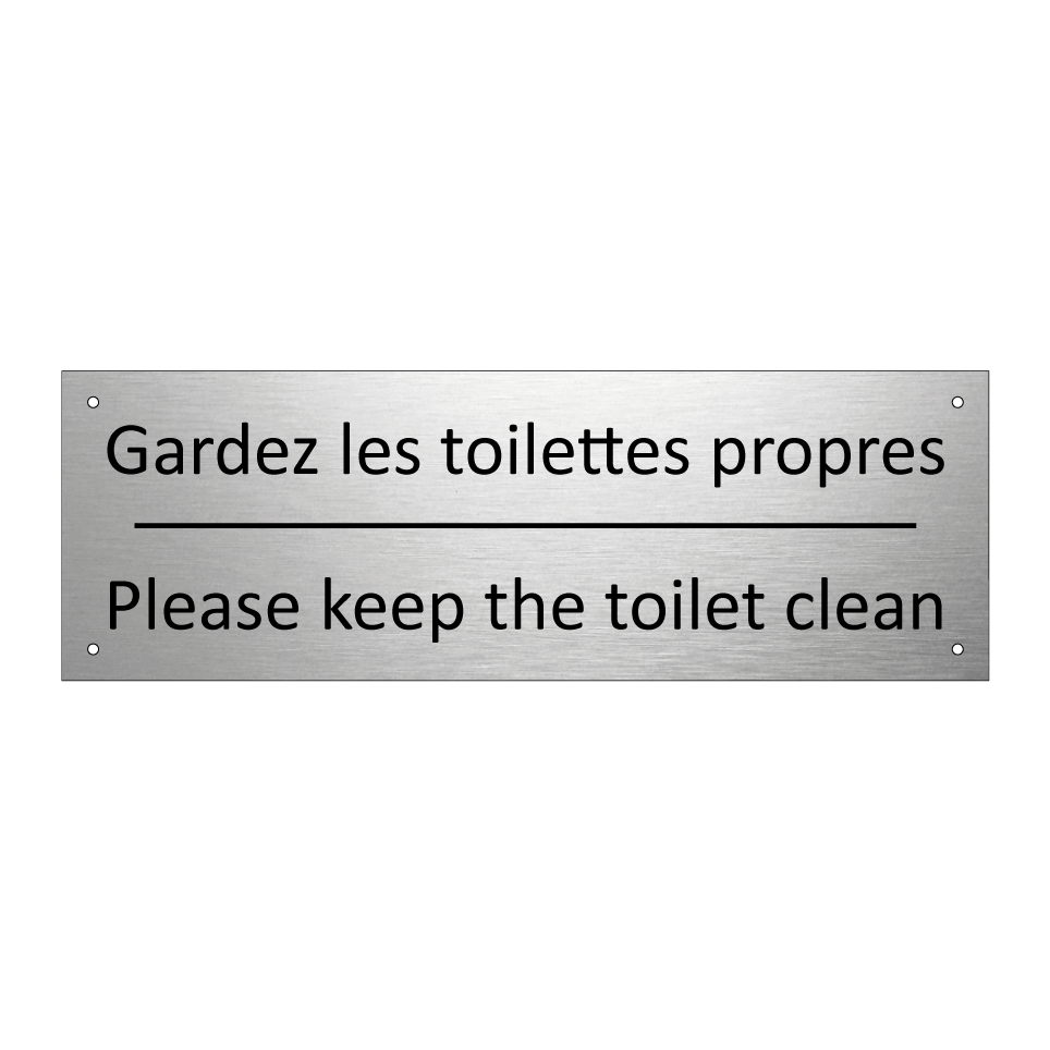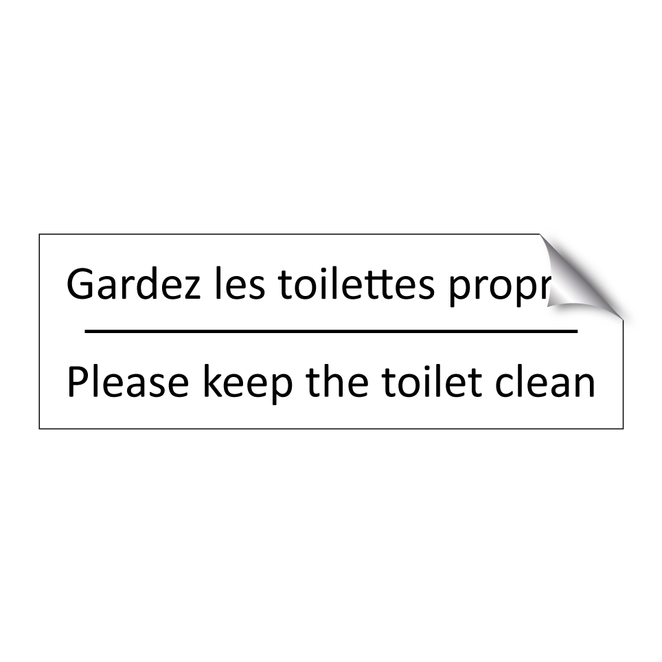 Panneau d'information avec le texte Gardez les toilettes propres|Please keep the toilet clean en français et en anglais.