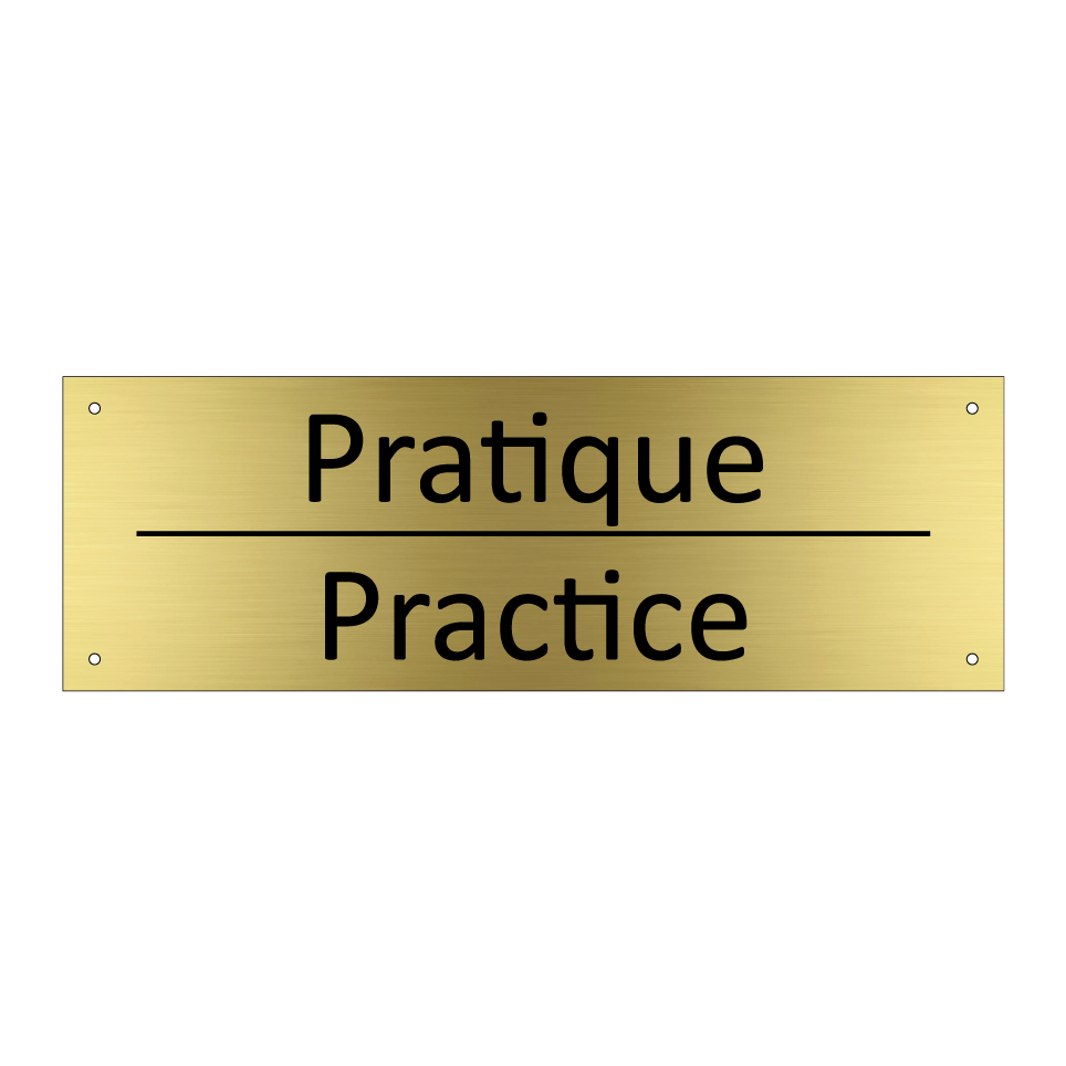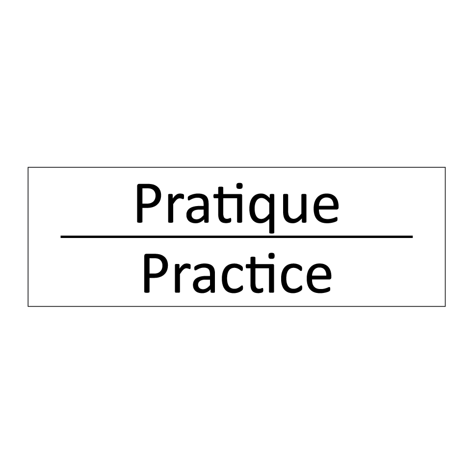 Panneau d'information avec le texte Pratique|Practice en français et en anglais.