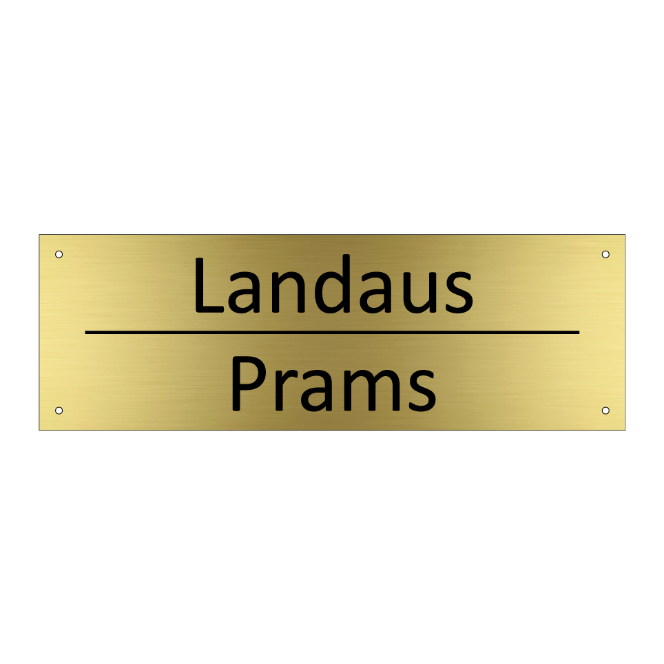 Panneau d'information avec le texte Landaus|Prams en français et en anglais.