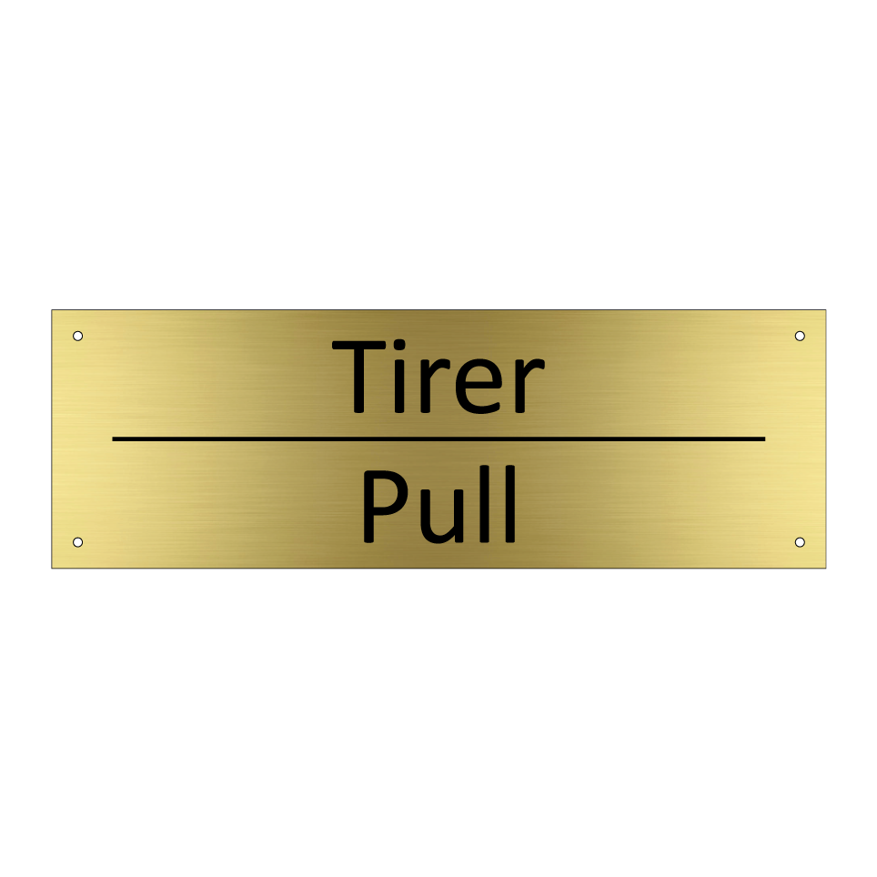 Ce panneau est disponible en Aluminium Brossé, Aluminium Aspect Laiton, Plastique et Autocollant.