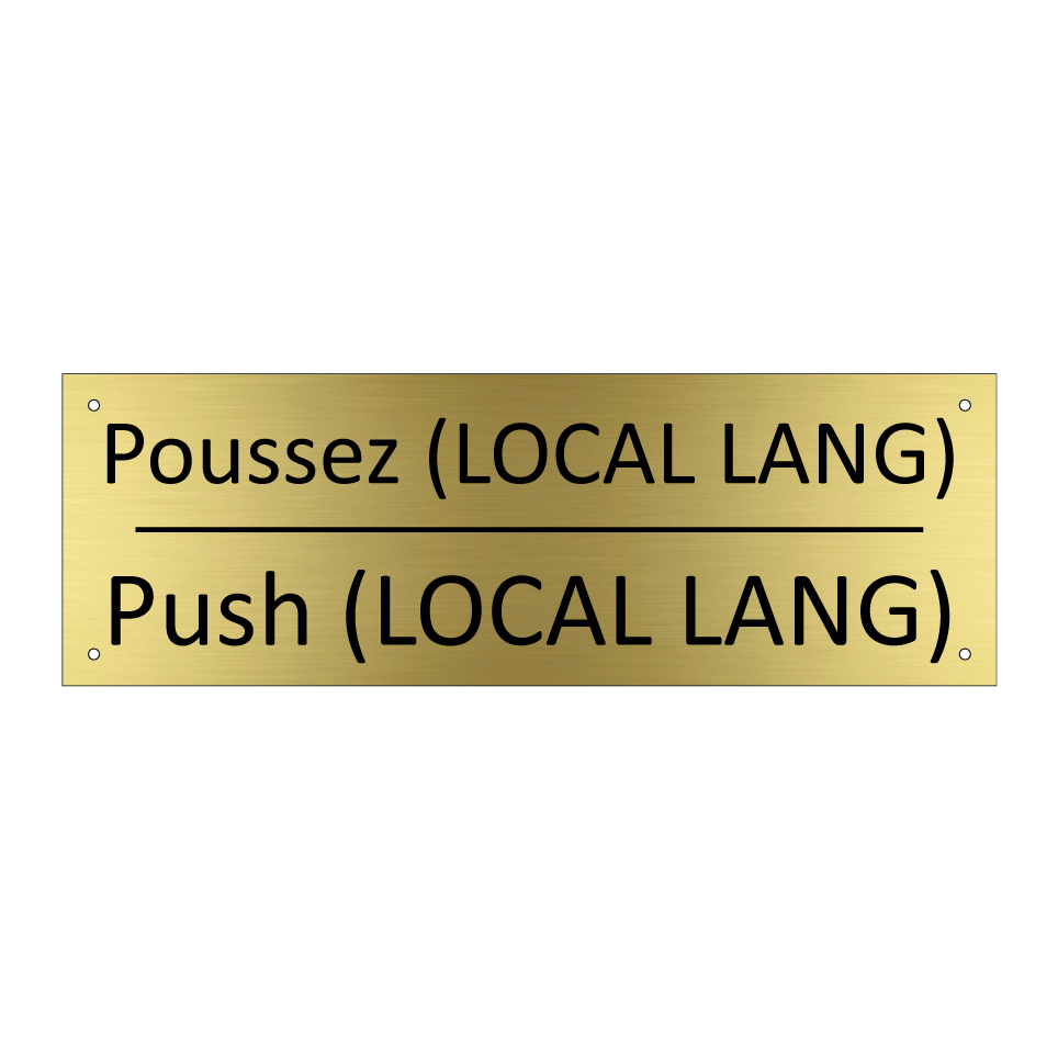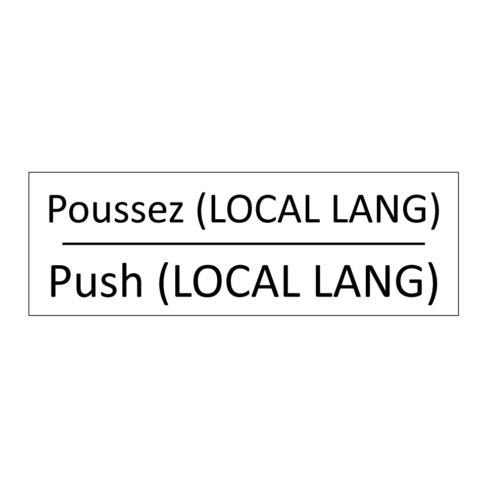 Panneau d'information avec le texte Poussez (LOCAL LANG)|Push (LOCAL LANG) en français et en anglais.