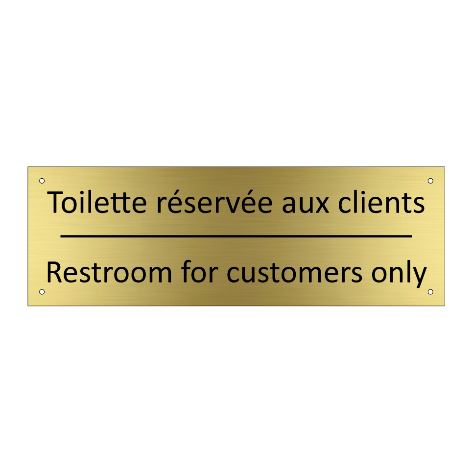 Panneau d'information avec le texte Toilette réservée aux clients|Restroom for customers only en français et en anglais.