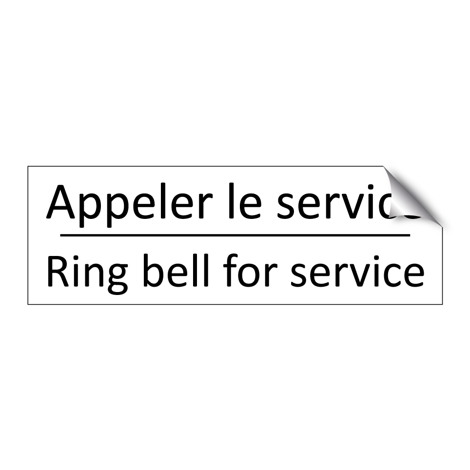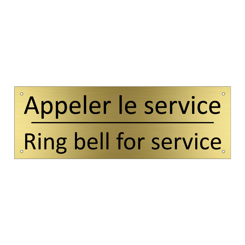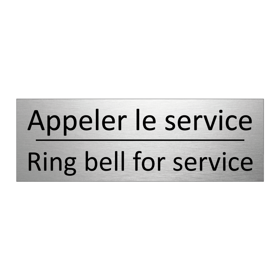 Panneau d'information avec le texte Appeler le service|Ring bell for service en français et en anglais.