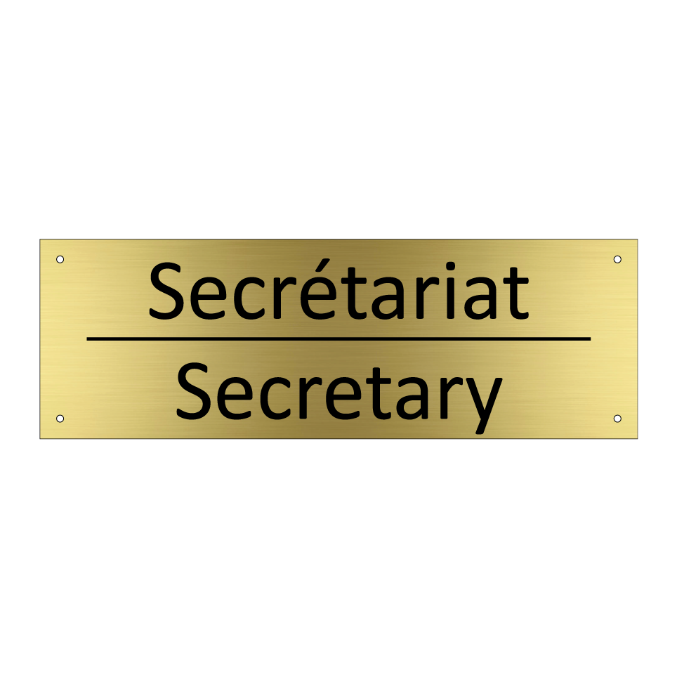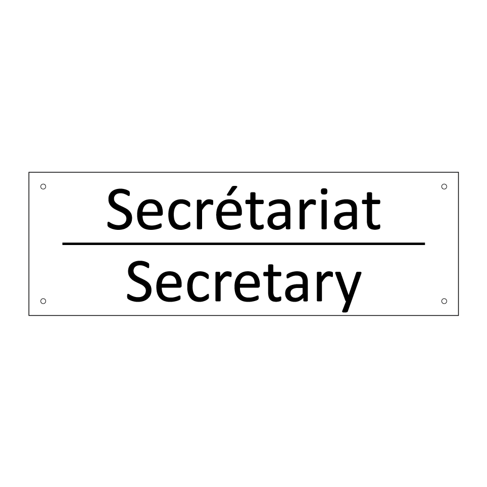 Panneau d'information avec le texte Secrétariat|Secretary en français et en anglais.