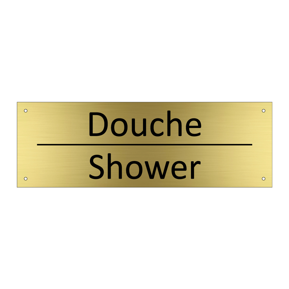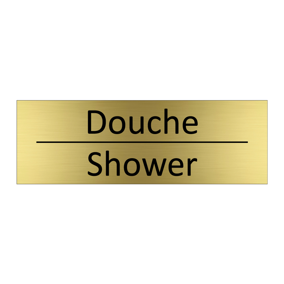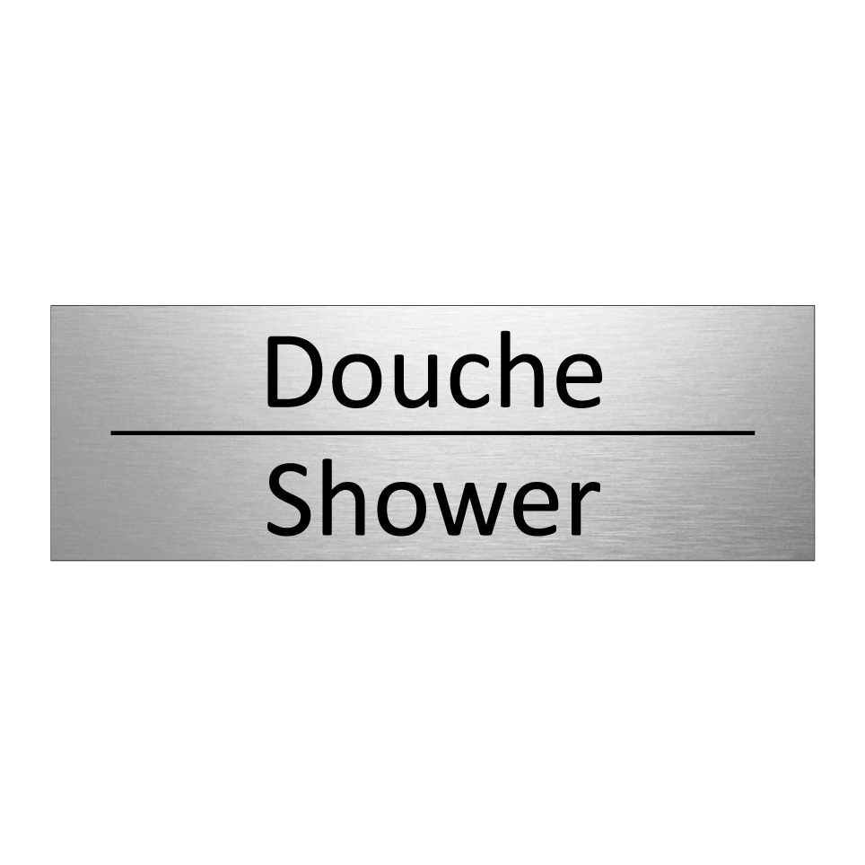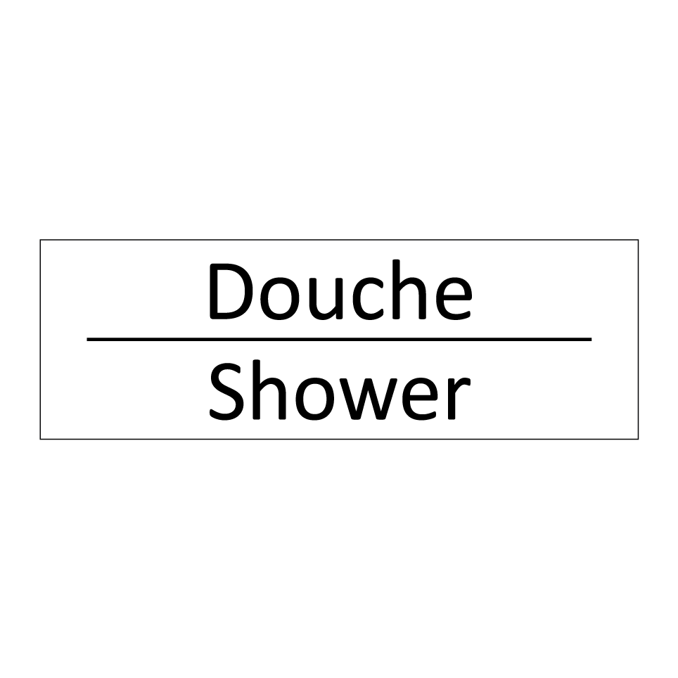 Panneau d'information avec le texte Douche|Shower en français et en anglais.