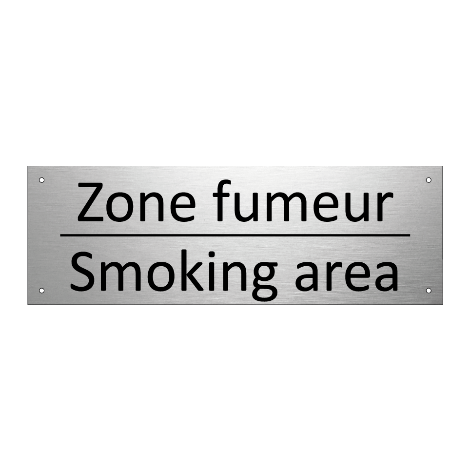 Panneau d'information avec le texte Zone fumeur|Smoking area en français et en anglais.