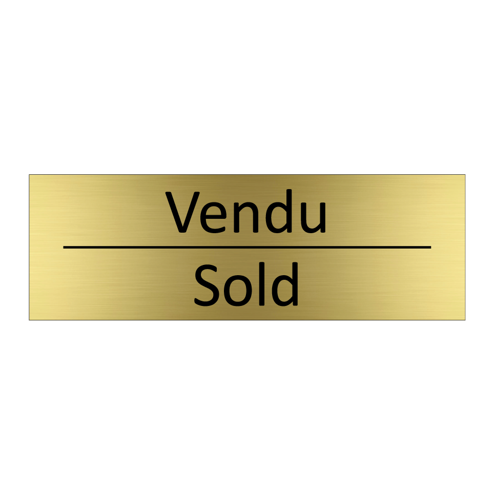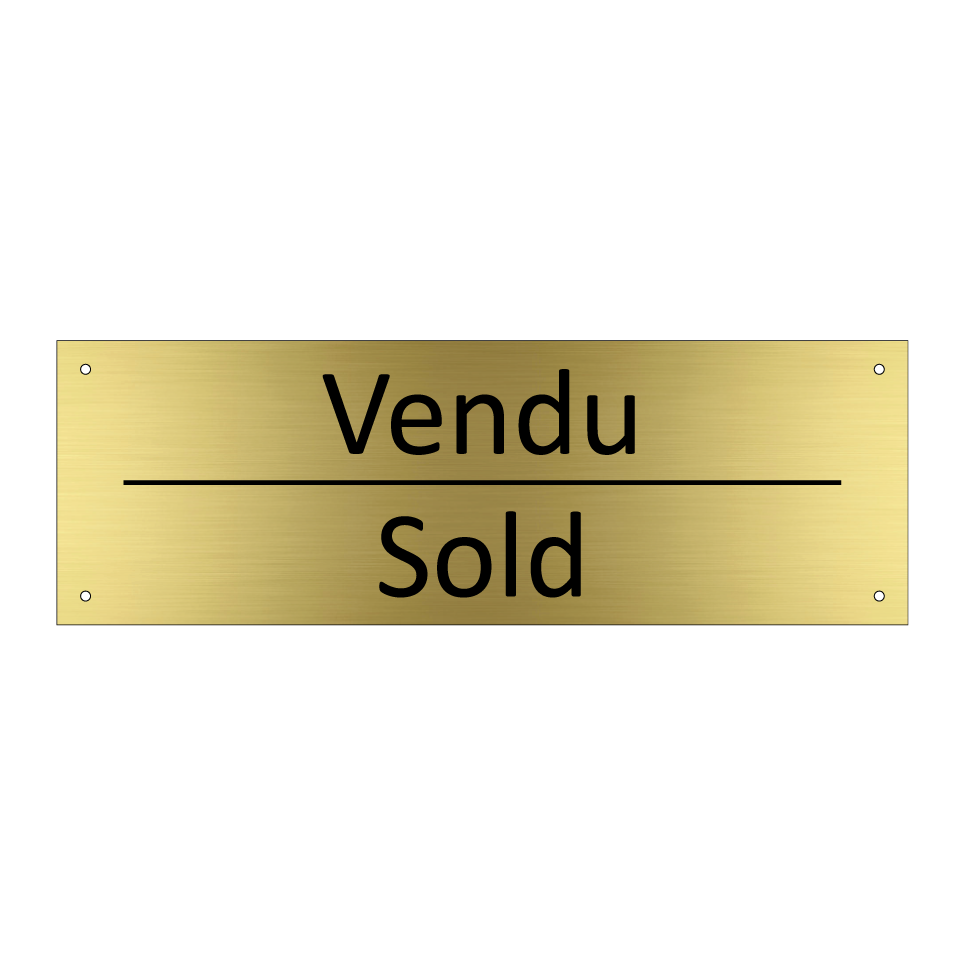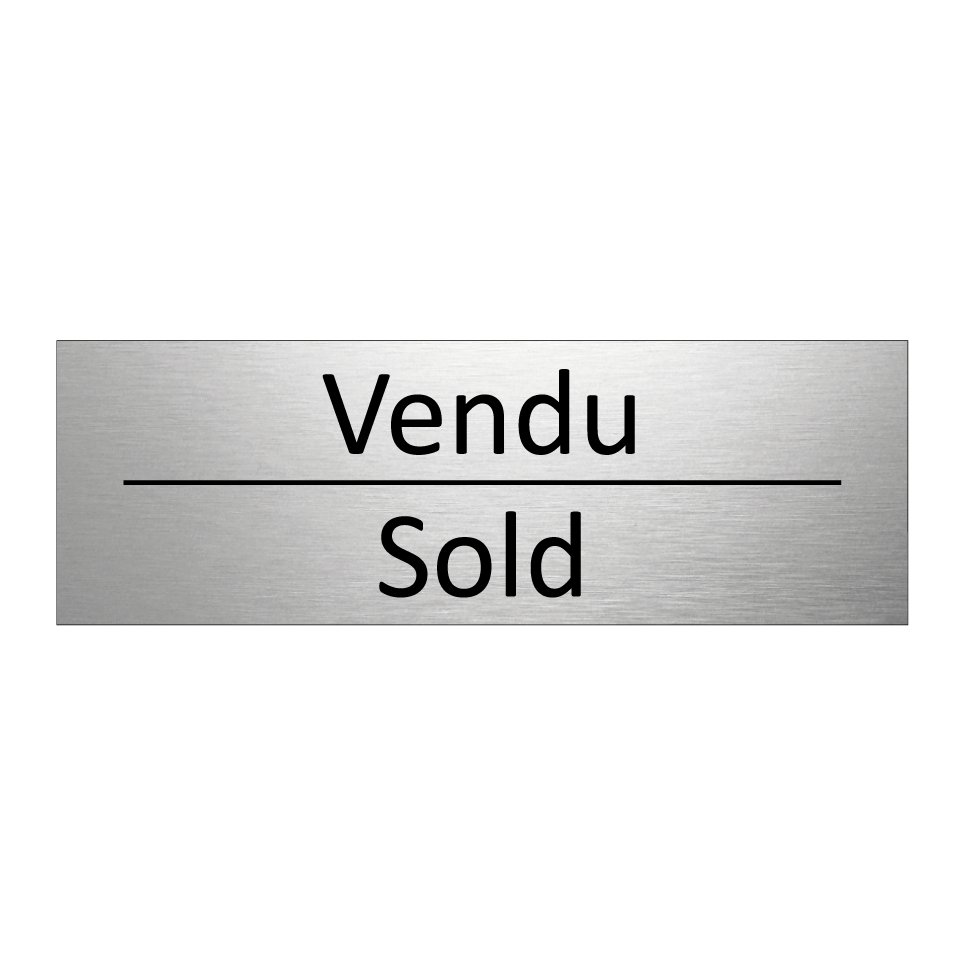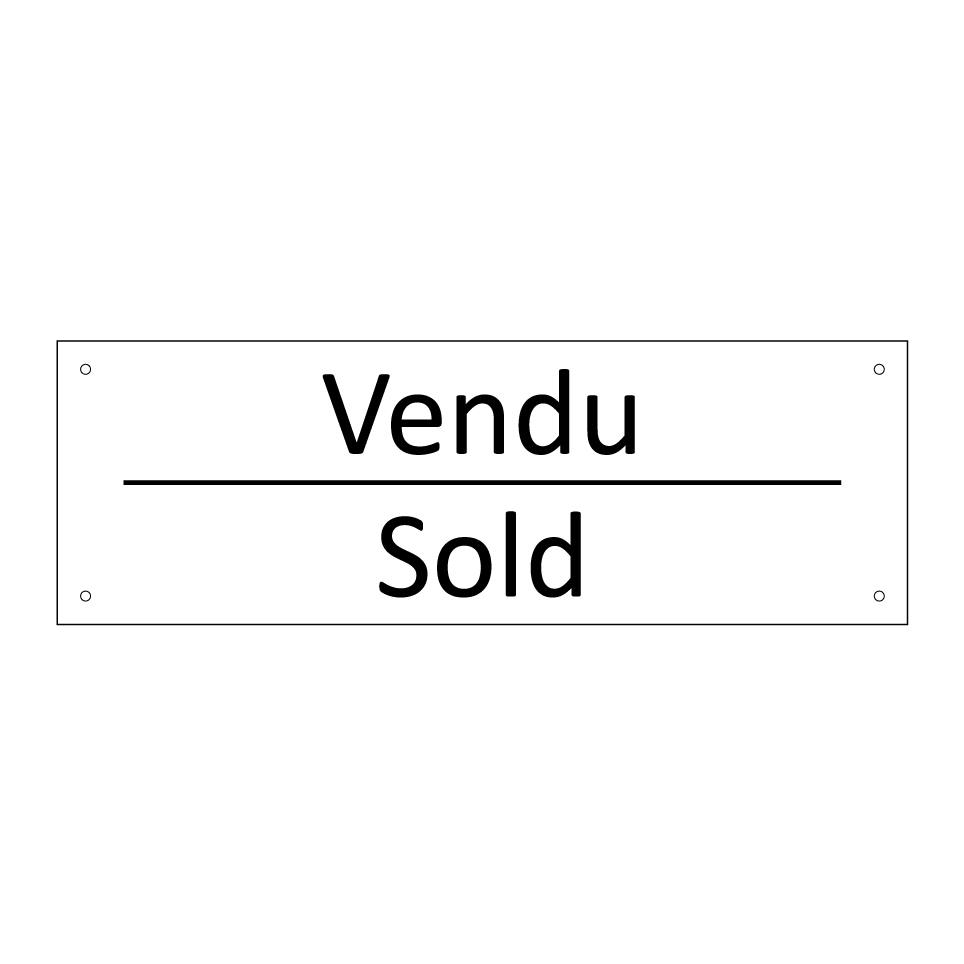 Panneau d'information avec le texte Vendu|Sold en français et en anglais.
